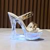 Женская обувь, пикантные шлепанцы на высоком каблуке со светящейся металлической пряжкой и кристаллами, серия 10365, каблук 14 см, платформа 4 см, LFD