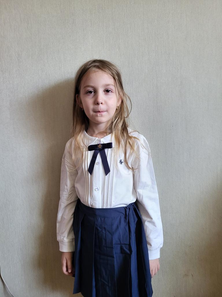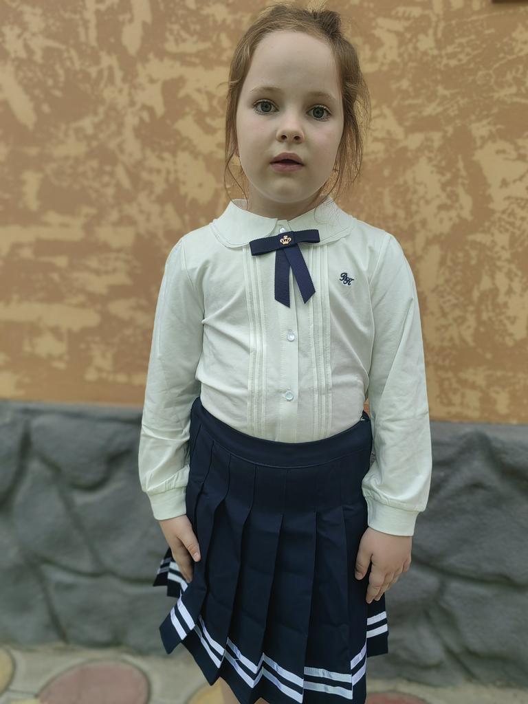 Рост ребёнка 122-123, рубашечка немного блольшевата, но не критично. Ткань натуральная очень приятная тактильно. Цвет айвори очень нежный. Довольна и качеством и моделью. Спасибо продавцу и команде Джум.