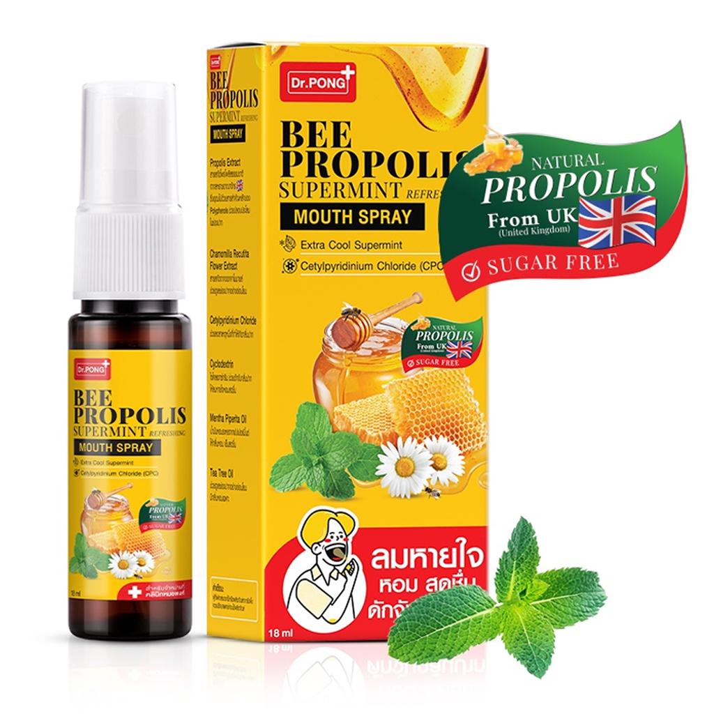 Спрей для рта Dr.Pong+ Bee Propolis Supermint, Extra Cool Supermint, цетилпиридиний хлорид (CPO), 18 мл. х 1/3 шт.