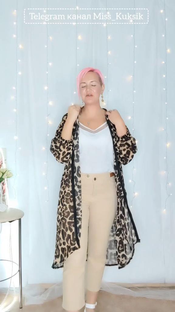 Хищный Лео 🦁 * Все ссылки на вещи которые используются в этом обзоре можно найти только в моём telegram канале Miss_Kuksik Ищите пост по тегу #накидка_Лео И не забудьте подписаться ✔ Привет! Не знаю, что там говорят стилисты, но мы все дружно любим "леопардА"😁 Если принт у "лео" "правильный" то образ может сложится очень достойный! Я нашла один интересный вариант. Накидка с хищной расцветке. Ткань: Шифон. Тонкий, прозрачный, легкий и конечно же не тянется. Дизайн: Накидка застегивается на пластиковую молнию. Имеет ассеметричный , скруглённый низ. Функциональный капюшон и длин рукава на конце которых вшиты резинка. ‼️так же есть много стильных штучек, рекомендую глянуть мое видео, там больше подробностей. Сезон: Лето Цвет: Леопардовый принт Минусы: Не является базовой вещью, нужно продумать образы с которыми, вы будете сочетать ее. Но если образы сложатся она станет вашей любимицей 😍 Качество: Фабричное, все ровно и аккуратно. Размер: На мне единый размер. Мои параметры: рост 172 см 96/75/105 см Детали: Длина 91/118 см Плечи 56 см Длина рукава 68 см ОГ 124 см ОТ 136 см ОБ 148 см Резюмирую: Это многофункциональная вещь имеет ряд преимуществ: может использовать, как накидка на повседневные образы, создавая модную многослойность, а так же на отдыхе у моря. При этом при правильном сочетании ее она может, скрыть недостатки фигуры, подчеркнуть ваш образ, защитить от яркого солнышка вашу кожу. Рекомендую! Берём! Я не прощаюсь, Miss_Kuksik