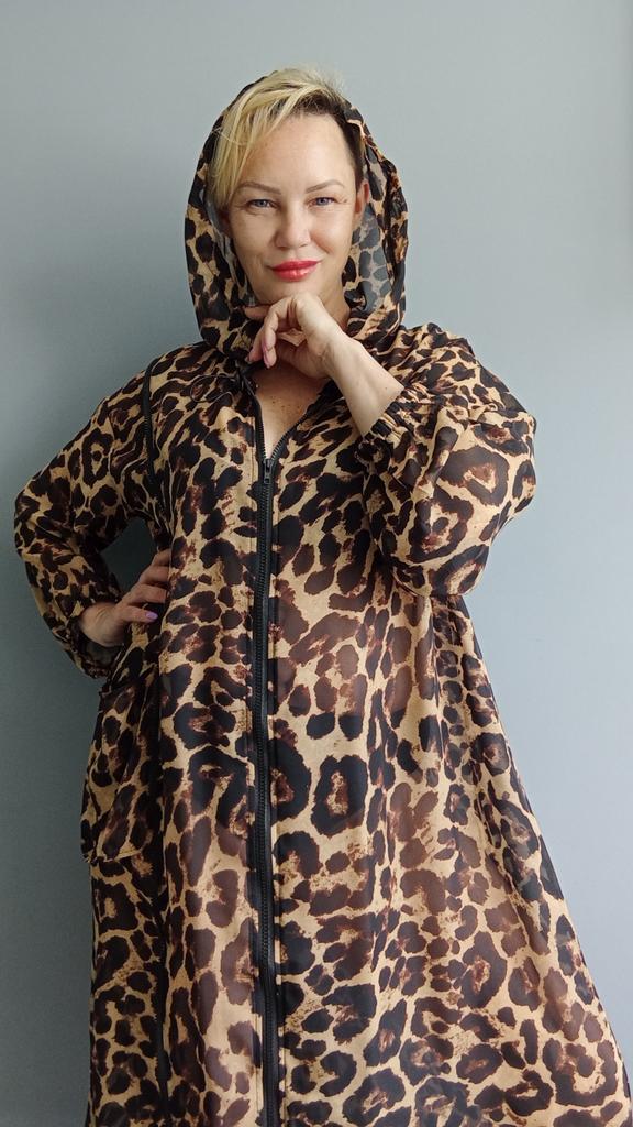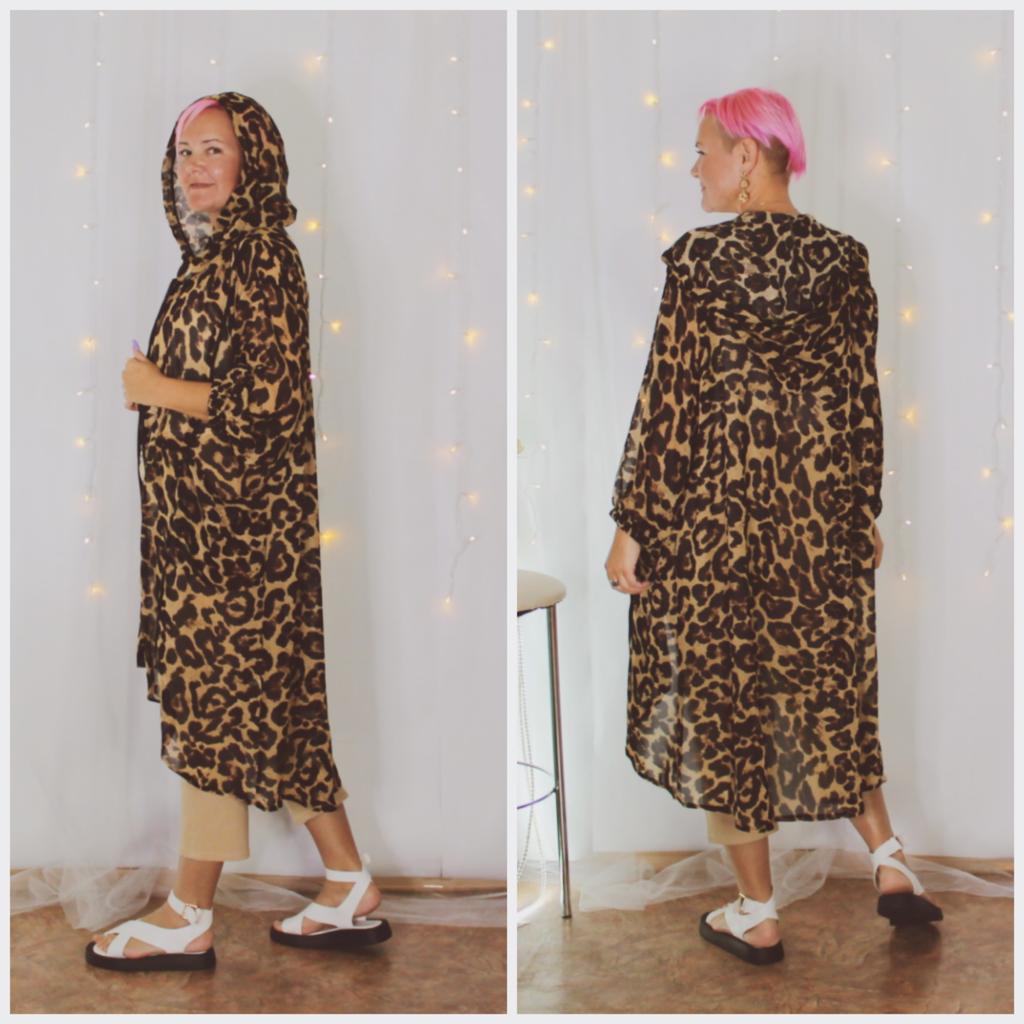 Осторожно, леопард) Туника с анималистичным принтом Больше обзоров, промокоды, подарки и закрытые распродажи в моем телеграм канале. Жми лупу 🧐🔎, вводи @Наталья_Великая . Меня можно найти также через браузер. Если не можешь найти, пиши ВК, ссылка в шапке профиля. Все ссылки на товары из обзора ищи в моем телеграм канале по тегу #туника_леопард Хищный принт никогда, никогда не выйдет из моды. Его носили, и будут носить женщины, не боящиеся привлекать к себе внимание. Пожалуй, нужно быть немного осторожной с выбором аксессуаров, чтобы одежда в такой расцветке не выглядела пошлой и вызывающей. Всего по- минимуму, и будет всё ок 👌 Представлена у продавца в единой расцветке и размере. Мои параметры: рост 167, 102-84-102. Села свободно, подойдёт на параметры больше и меньше моих. Ткань- китайский шифон. Молния пластиковая. На капюшоне фиксаторы. С одной стороны как- бы карман) но без фиксации снизу, то есть, просто элемент декора. Тунику можно носить на пляж, также хорошо она смотрится с джинсами и топом. В общем, выбор за вами. Как нравится, так и носите). Замеры: Плечи 57 ОГ 122 Длина рукава 44 Длина 90-120. Пошив аккуратный. Мне нравится, рекомендовать могу.