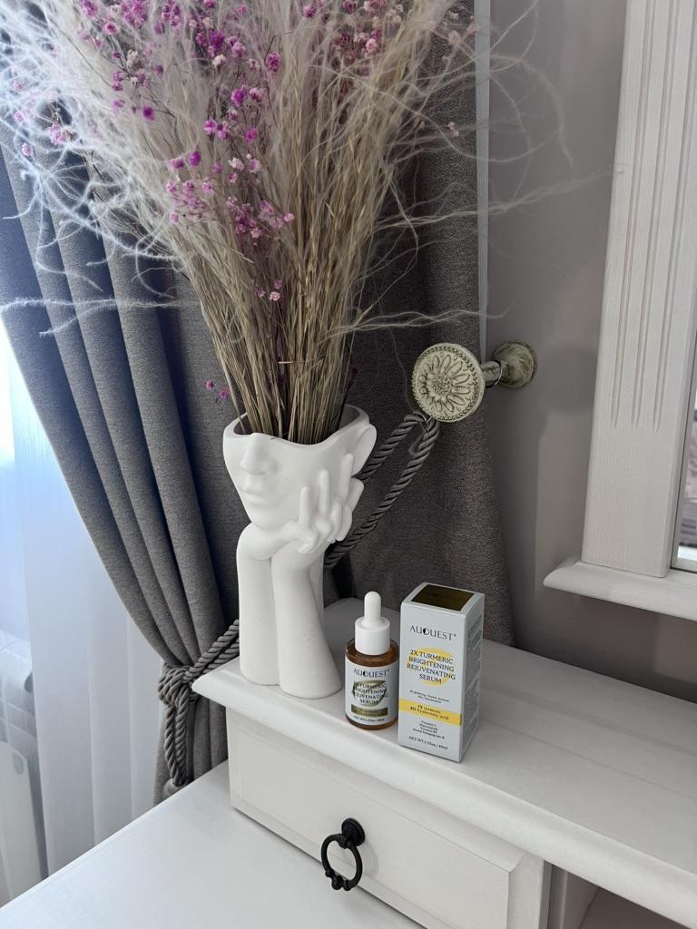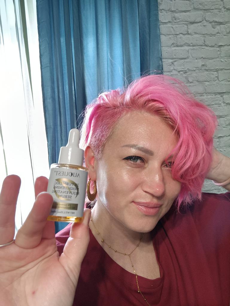 Сыворотка для лица от AUQUEST c маслом куркумы, ниациамидом и гиалуроновой кислотой. И не только, мостов полностью смотрите в описании. Я усиленно отбеливаю кожу. А она как на зло быстро загорает. Но из личного опыта могу сказать что за зиму отбелила конкретно. И с возрастом наличие светлой ровной кожи только скрывает возраст и не так видны мимические морщинки. Поэтому заказываю себе сыворотки с ниациамидом. Просмотрела состав данной сыворотки, заинтересовал. Есть ещё и витамины и наличие куркумы - поэтому и заказала. Насколько быстро она работает - не могу сказать, так как регулярно использую отбеливающие сыворотки в комплексе с другими средствами. И этот процесс у меня беспрерывный. По ощущениям всё отлично, аллергической реакции или дискомфорта нет. Мне отлично подхон. Единственное, что на улице лето и много солнца. Использую только на вечер. А утром наношу СПФ крем. Вообщем данная покупка оправдала ожидания, эффект мне нравится. И это не первое средство от данного производителя. Поэтому рекомендую вам и данный товар и магазин. Заходите к ним. А с вами Ксю и до следующего обзора 😉