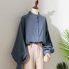 Белая рубашка с рукавами-фонариками, женская матовая рубашка с длинными рукавами, корейская мода, свободная рубашка с воротником-стойкой и объемными рукавами