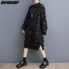 DIMANAF Женское платье больших размеров 2023, новое летнее стильное платье с длинным рукавом и круглым вырезом, свободное платье с цветочным принтом, базовое черное новое