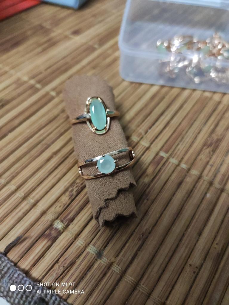 Аккуратное,на пальчике смотрится красиво.Смотрится как золото,стоит проба 585.Ощущение,что позолота,камышек мутный,цвет светло-фисташковый.Это бюжетерия,но качественная.Спасибо Джуму и производителю.Посылка шла меньше месяца.Китайский размер 9,подходит на 19 размер пальца.После недели носки,кольцо начало облазить до белого цвета и это очень неприятно.