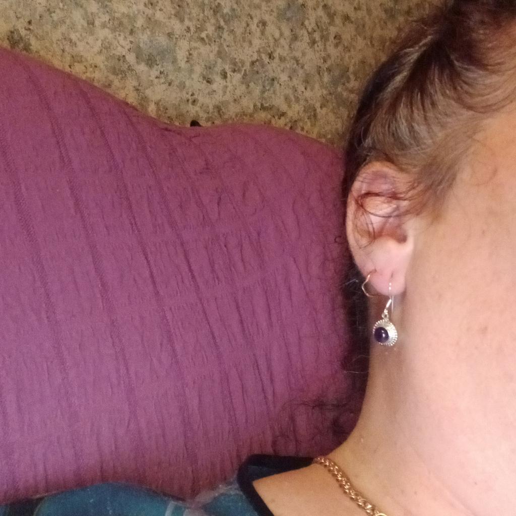 Цвет темный, а не светло-сиреневый, как на фото продавца. Душка перемудрённо изогнута, из-за этого не нравится как смотрится на ушах. На фото плохо видно, по факту хуже.