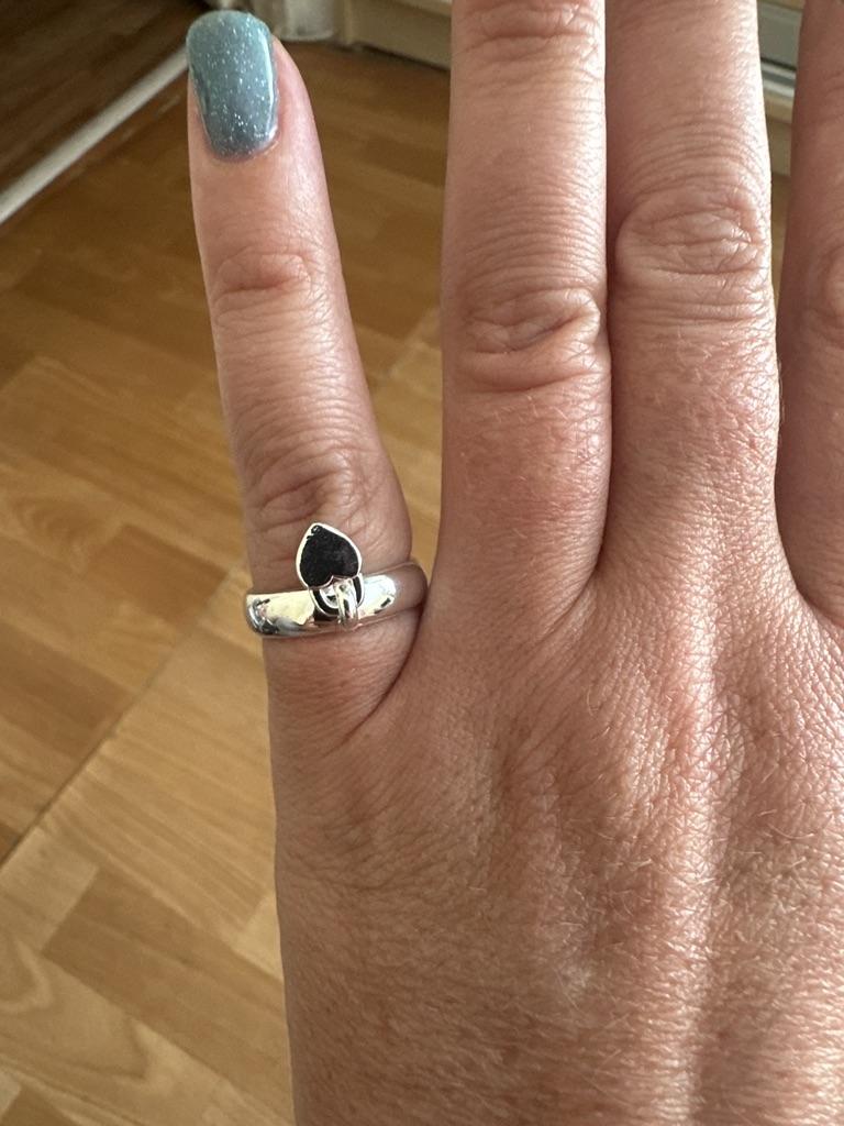 Серебряное кольцо с висящим сердечком. Спасибо Джум.