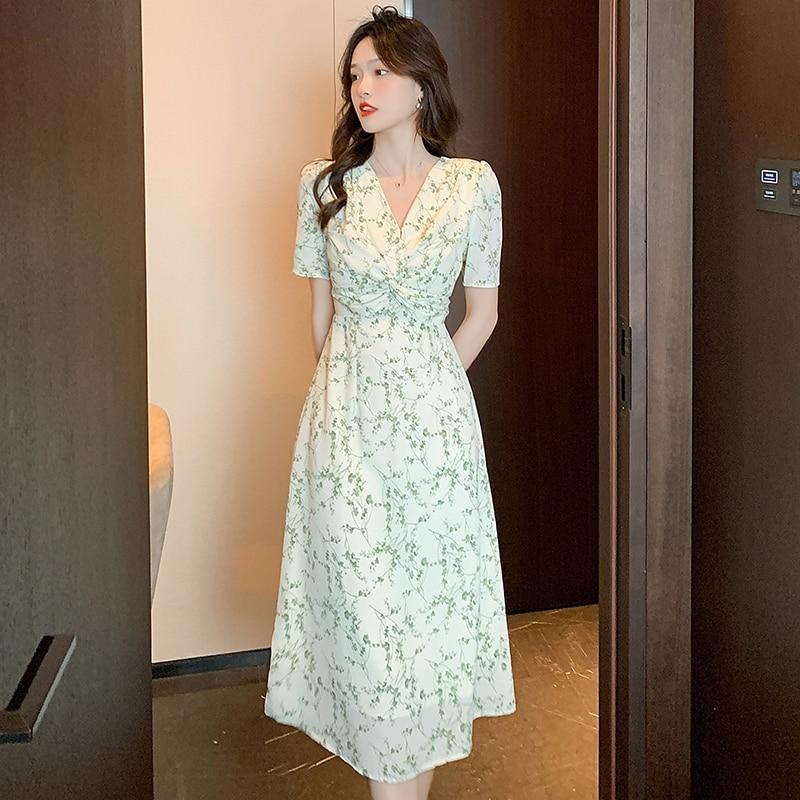 Модное простое платье с принтом для женщин, повседневные летние вечерние платья с короткими рукавами, элегантное длинное платье, платья в стиле бохо, халат 24603