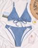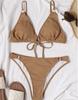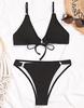 Женский купальник, однотонный купальник с треугольными чашечками и V-образным вырезом, сексуальный бикини с завязками на спине, пляжная одежда, купальные костюмы