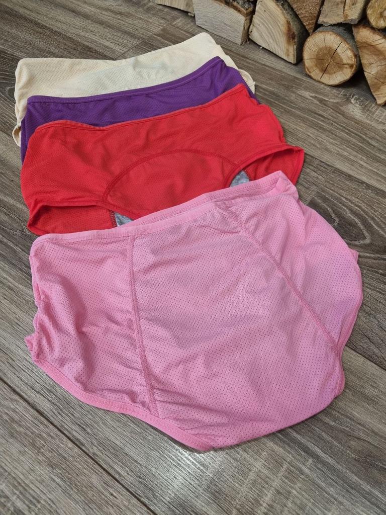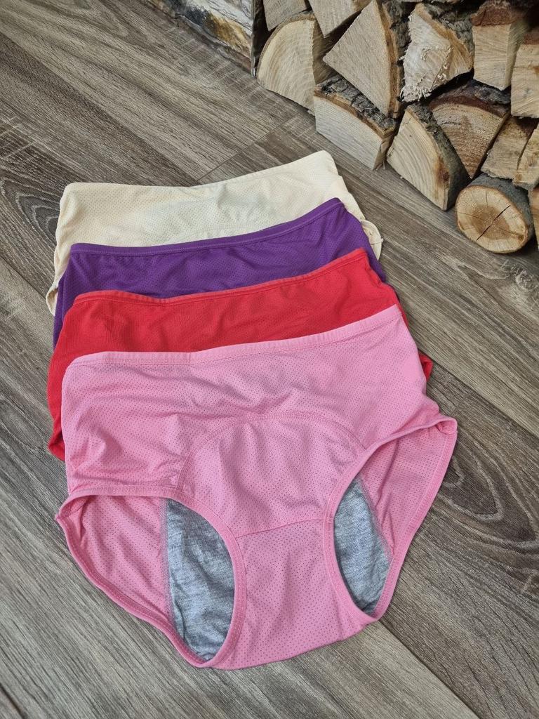 Трусы для критических дней с непромокаемой вставкой Трусики, которые должны быть у каждой девушки! 100% защита от протеканий! Эти трусики позволят вам почувствовать уверенность во время менструации при сильных выделениях. Приходят трусики в упаковке. Не было ни запаха, ни ниток. Комплект состоит из 4 штук. Качество трусов отличное, все аккуратно, все строчки ровные. На свои параметры ОБ100 я заказала размер XL, малы оказались, так что если у вас такие же параметры, берите лучше размер 2XL. Трусики идут с высокой посадкой. Материал трусиков идет с перфорацией, это чтобы тело дышало (кроме той части, где специальная вставка). Очень мягкие и приятные на ощупь. Облегают хорошо, в них очень удобно, прилегают замечательно. Ну и самая главная часть в трусиках, эта непромокаемая вставка выполнена из нескольких слоев ткани, внутри, как-будто клеенчатая ткань, но при носке она не шелестит, но защищает от протеканий. ЗАЩИТА СПЕРЕДИ И СЗАДИ: защитные слои расположены так, чтобы защитить вашу одежду и постельное белье от протечек при менструации, этот слой находится спереди и до самого конца сзади, до шва. Если Вы задумывались о покупке такого нижнего белья, берите, не пожалеете! Я однозначно советую, трусы действительно классные!