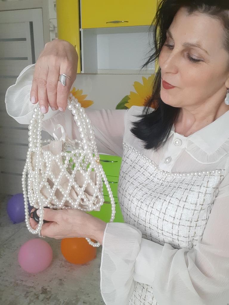🤩🤍Моя любовь 😍 Сумочка из жемчужин Просто очаровашка Такая малюсенькая, но в то же время вмещает всё, что нам нужно взять с собой в кафе:зеркальце,помада,духи,карты банка, салфетки,ключи 🤍🤩Очень красивая сумочка,дополнение к любому образу,сходить в кафе,ресторан. Сделана очень качественно из бусинок жемчужин. Есть две маленькие ручки и длинный ремешок 🤩🤍Внутри мешочек,который утягивается тесёмкой,чтобы ничего не выпала Однозначно рекомендую 👐 Спасибо продавцу и Джум 🤗 Брала за 846р😊