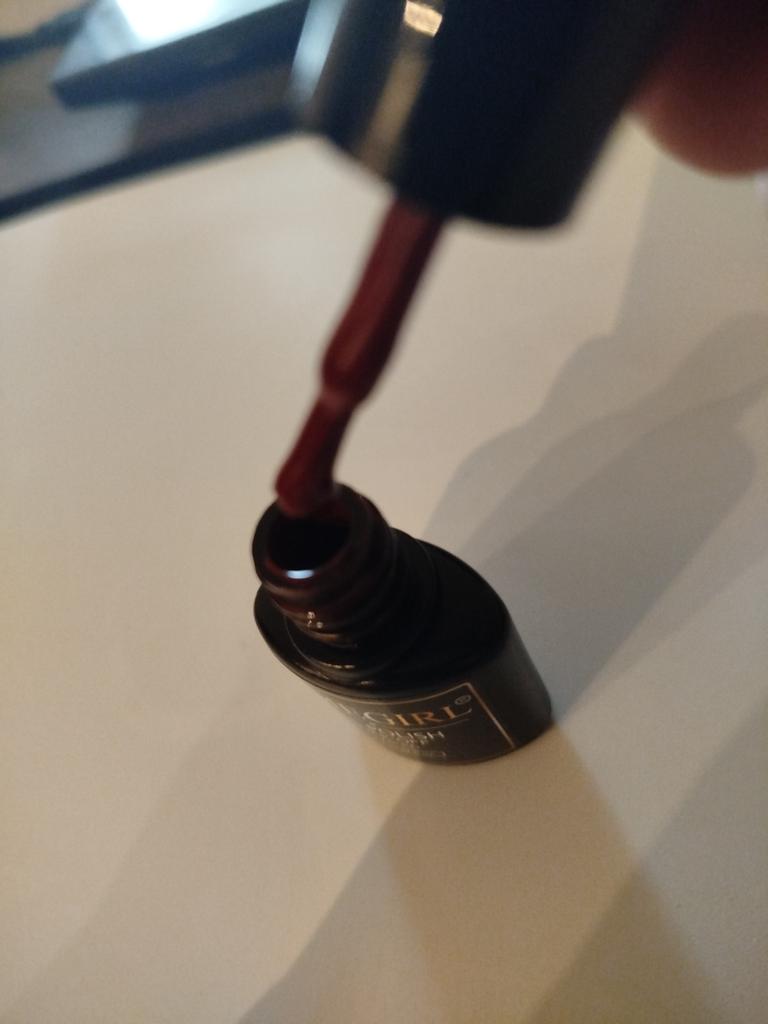Гель-лак НС026 темно-красный, цвет красивый, ближе к бордо. Хорошая консистенция, средней густоты, не жидкий.