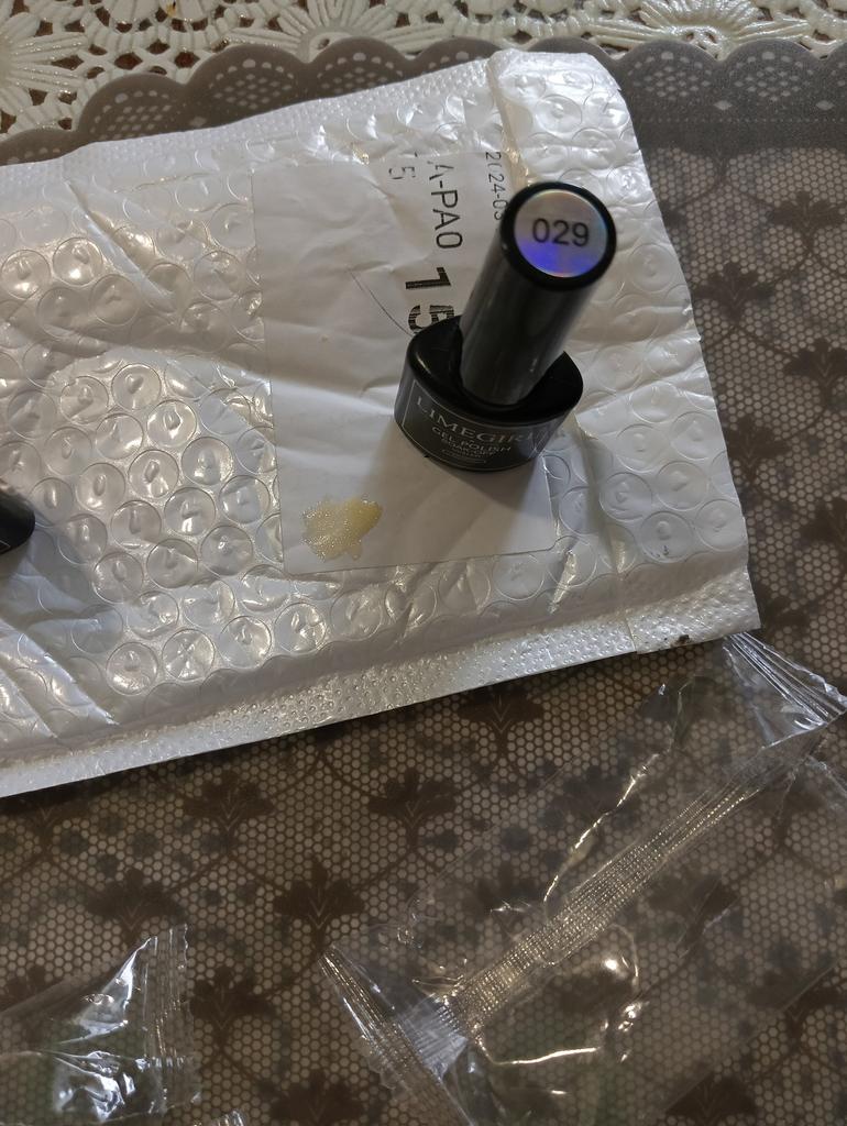 Получила свой заказ(топ и базу для ногтей) сегодня, 10 ноября, спасибо. Упакованы флакончики по одному в пакетики с пупыркой, и вложены ещё в пакетики с замочком
