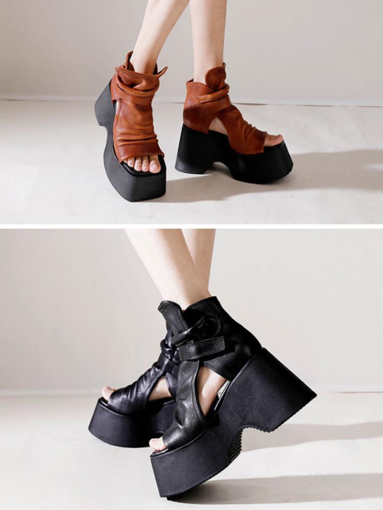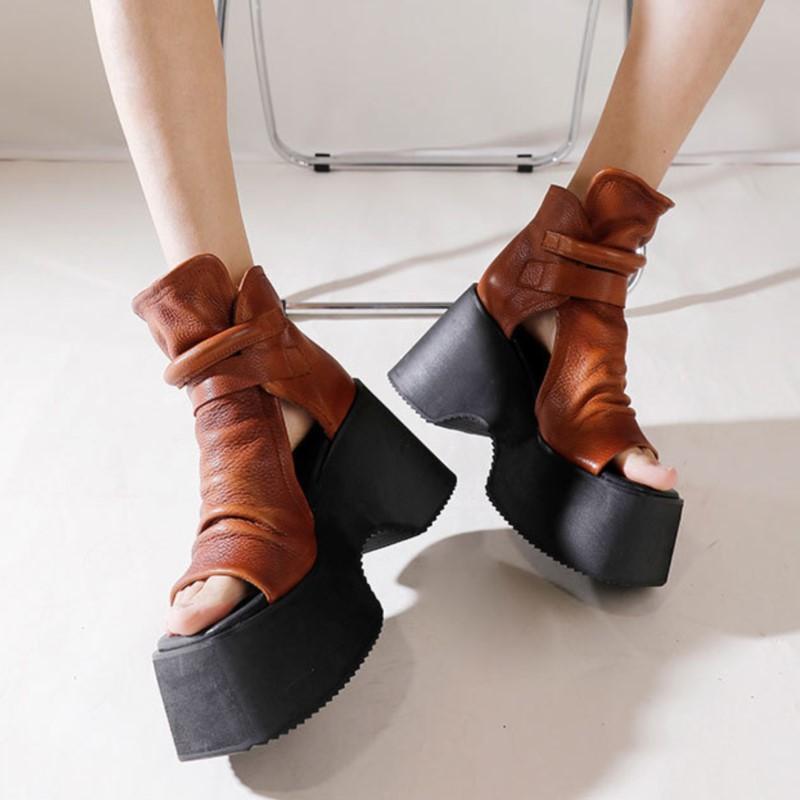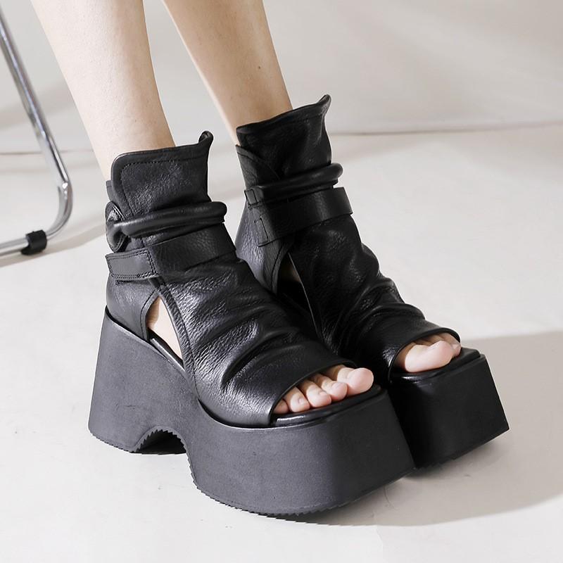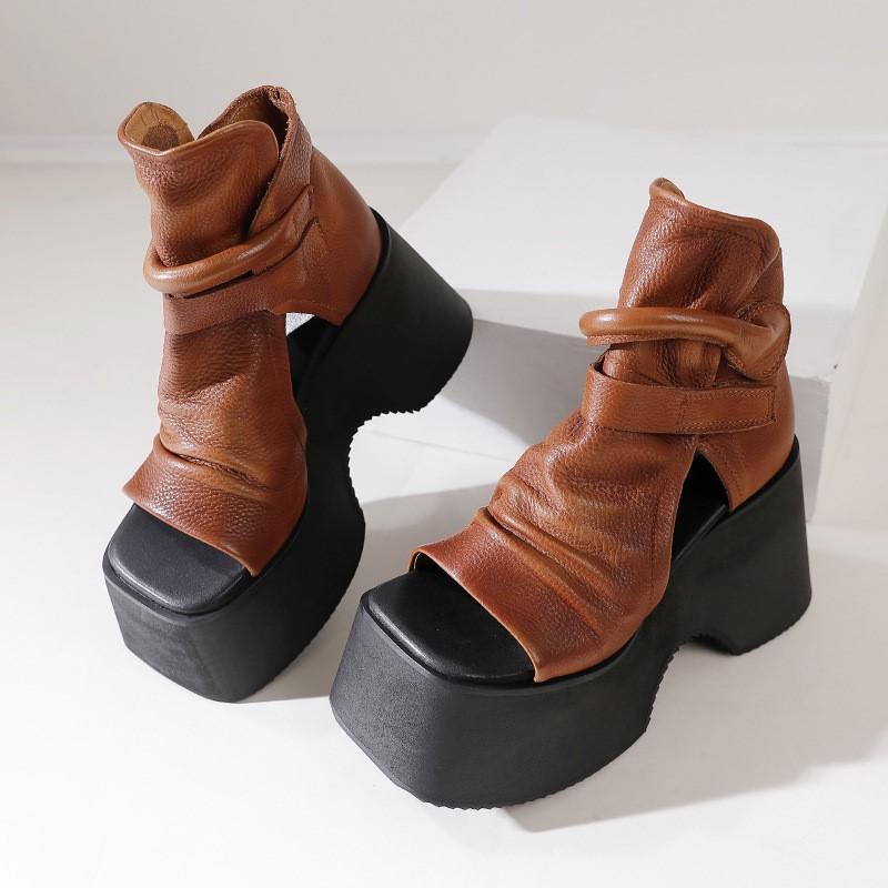 Johnature Винтажные сандалии на толстой подошве, женские удобные туфли на платформе с открытым носком из натуральной кожи