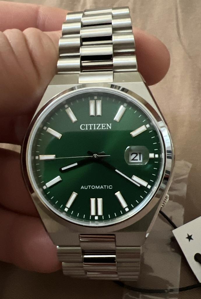 Посылка пришла за 24 дня. По доставке, упаковке и макулатуре (гарантийные талоны и т.д.) все отлично как и всегда. Теперь о часах. Понравился форм фактор (как можно не любить интегрированный браслет?), прекрасный циферблат и на удивление сам браслет (тактильно очень приятный, такое не ожидаешь от часов данного ценового диапазона). Теперь о том, что в часах не понравилось, а именно: циклоп, очень громкий автоподзавод и заводная головка. Я хоть и не являюсь ярым хейтером "лупы", но считаю, что в кежуал часах она абсолютно ни к чему и только портит внешний вид. Идем далее, автоподзавод при сильном встряхивании кисти настолько громкий, что не обратить на это внимание просто невозможно. Лично у меня это вызывает раздражение. Заводная головка (без гравировки) расположена максимально неудобно, работать ей это целое "приключение". На PRX это реализовано на несколько голов выше. В целом, неплохие бюджетные часы, но есть нюансы, которые вызывают логичные вопросы. Взял бы я их себе при живом затесте? Думаю да, т.к. не так много часов с зеленым цветом циферблата и на "модном" интегрированном браслете.
