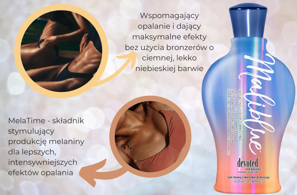 Преданные творения Maliblue 362ml Сильный интенсификатор, поддерживающий солнечные ванны и дающий максимальный эффект без использования бронзаторов с темным, слегка синим цветом, который исключает возможный оранжевый оттенок экстракта загара с экстрактом сливы какаду - чрезвычайно богат витамином С и антиоксидантами позволяет сохранить эластичность и молодой внешний вид. Позволяет уменьшить покраснение, облегчить воспаление и очаги акне Myrazeze – это экстракт южноафриканского растения, защищающего от свободных радикалов, благодаря которому он тормозит процессы старения кожи.. Интенсивно увлажняет, благодаря чему предотвращает высыхание кожи до 48 часов. Голубой загар, часто называемый «голубой ромашкой», представляет собой экстракт марокканской пижмы, обладающий сильными успокаивающими и противовоспалительными свойствами.. Голубое масло, полученное из этого растения, позволяет восстановить баланс кожи, укрепляет ее и питает, а также препятствует старению. Экстракт тигровой травы - противовоспалительный ингредиент, действительно может воздействовать на микроповреждения кожи, разглаживает ее за счет устранение видимости целлюлита или мелких морщин. Показывает свойства, которые стимулируют реконструкцию коллагена C5 Technology - легкая формула, питающая и придающая коже шелковый оттенок, обеспечивая длительное увлажнение, гладкую кожу и длительный загар Matrixyl Synthe 6 - передовой эффективный ингредиент, разглаживающий и против морщин, напрягающий и укрепляющий кожу, стимулирующий структуру - Интенсивный увлажняющий и смягчающий ингредиент, помогающий сохранить загар дольше, улучшение его общего состояния BodyFit - смесь укрепляющих ингредиентов, которые обеспечивают уменьшение видимого на коже мелатиме целлюлита - компонента, стимулирующего выработку меланина для лучшего, более интенсивного свежего эффекта загара - зарезервированная смесь, направленная на уменьшение неприятного запаха кожи после купания в солнечной емкости: 362мл
