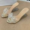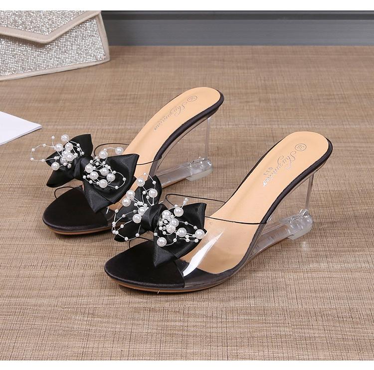 Женские пикантные сандалии на каблуке с бантом и кристаллами 8 см, танцевальные трендовые тапочки LFD-1098-113