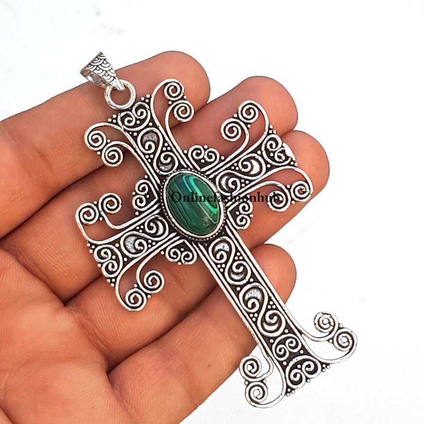 Ювелирные изделия с подвеской в виде креста из стерлингового серебра 925 пробы с малахитом NNCE-343
