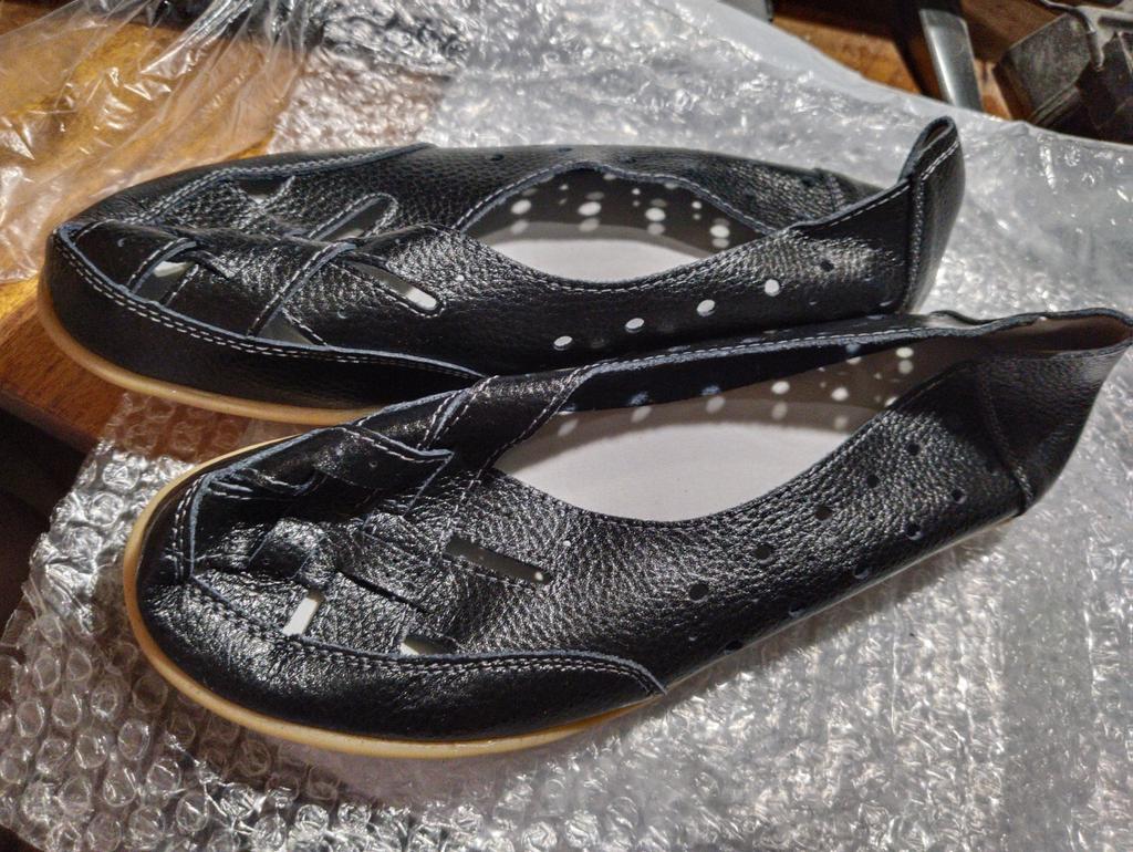 Подобные туфли(тапочки) беру не первый раз. Очень удобно носить. На проблемных ногах вообще не ощущаются. Ношу 39-40 размер(в зависимости от полноты изделия) Заказала 40 размер и не прогадала. Вначале были чуть туговато, но через день стали по ноге. В них очень удобно летом. Кожа натуральная, ноги дышат. Сначала присутствует лёгкий запах резины, но быстро выветривается. Товар и продавца рекомендую. Продавцу и сотрудникам Джум спасибо
