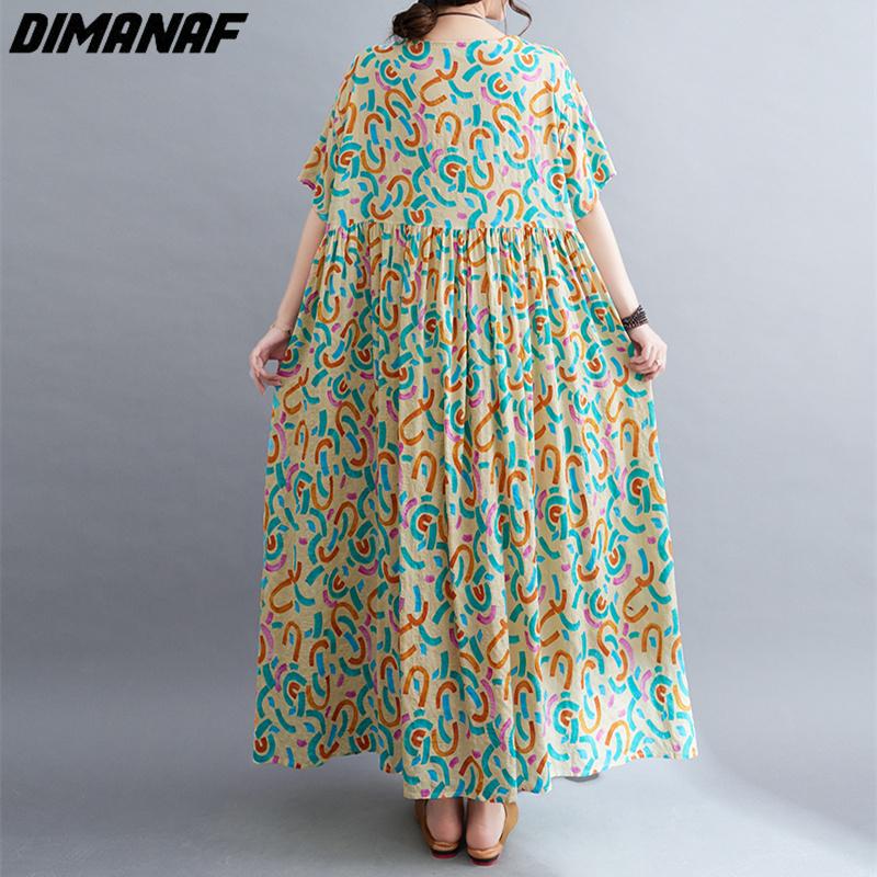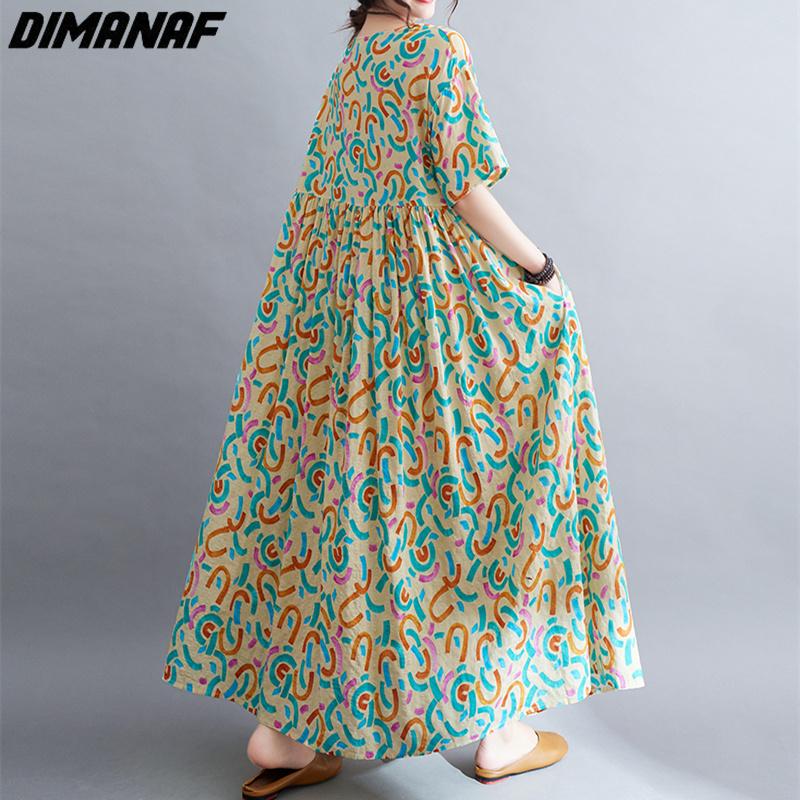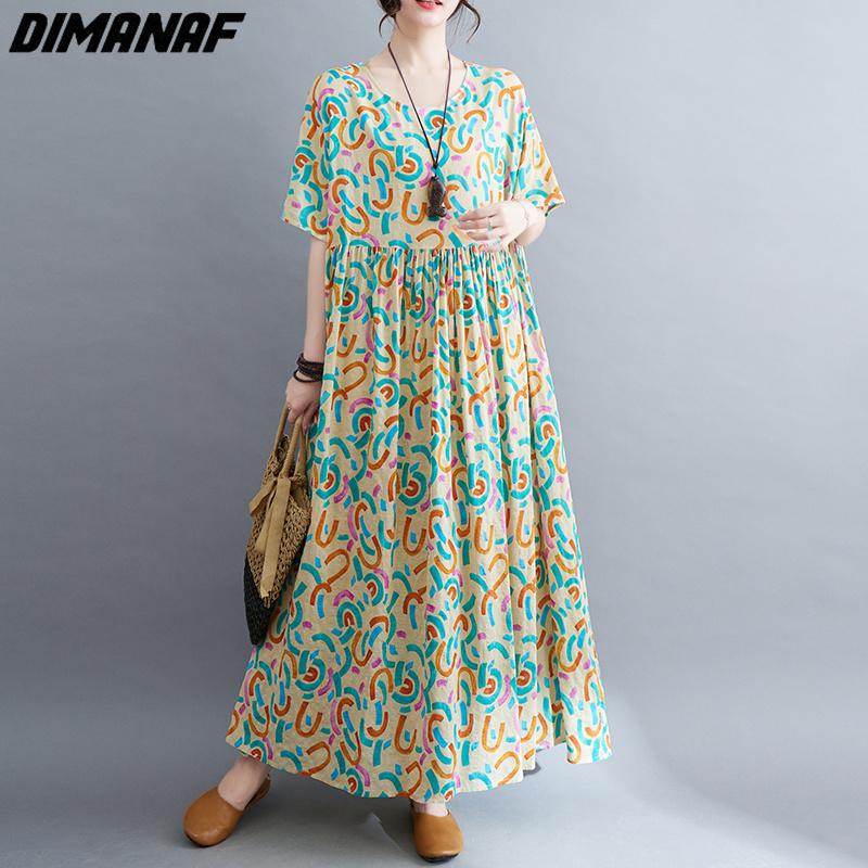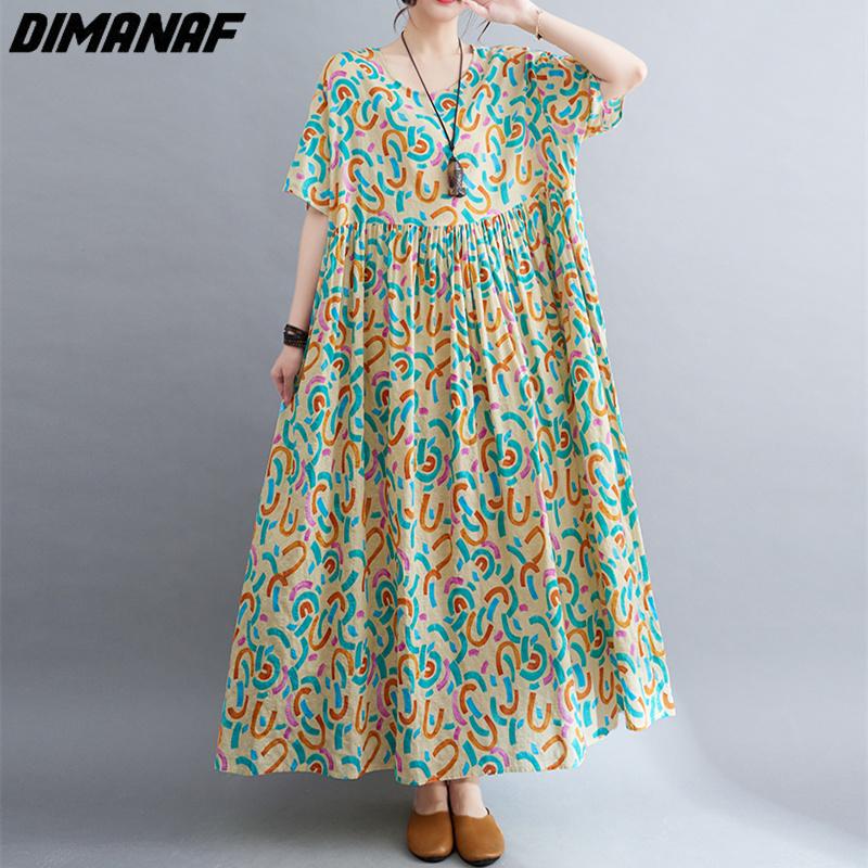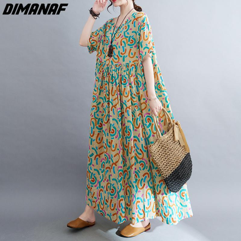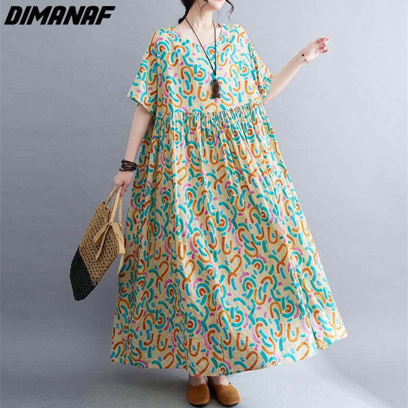 DIMANAF платье больших размеров женское 2023 новые летние стильные зеленые платья свободные платья с круглым вырезом и цветочным принтом новые