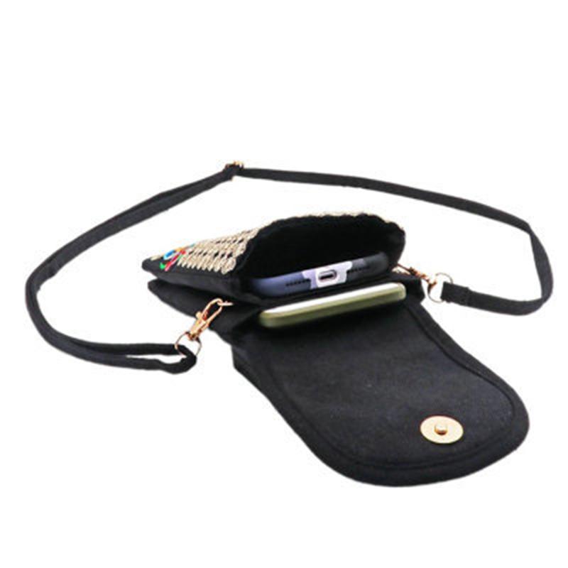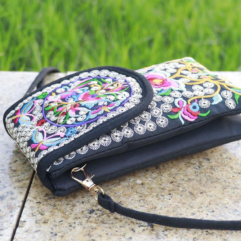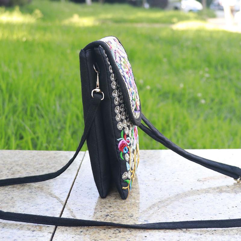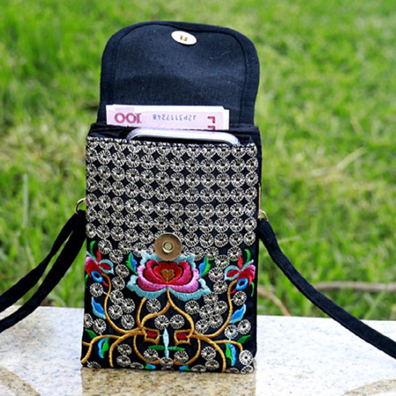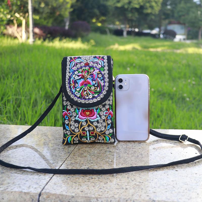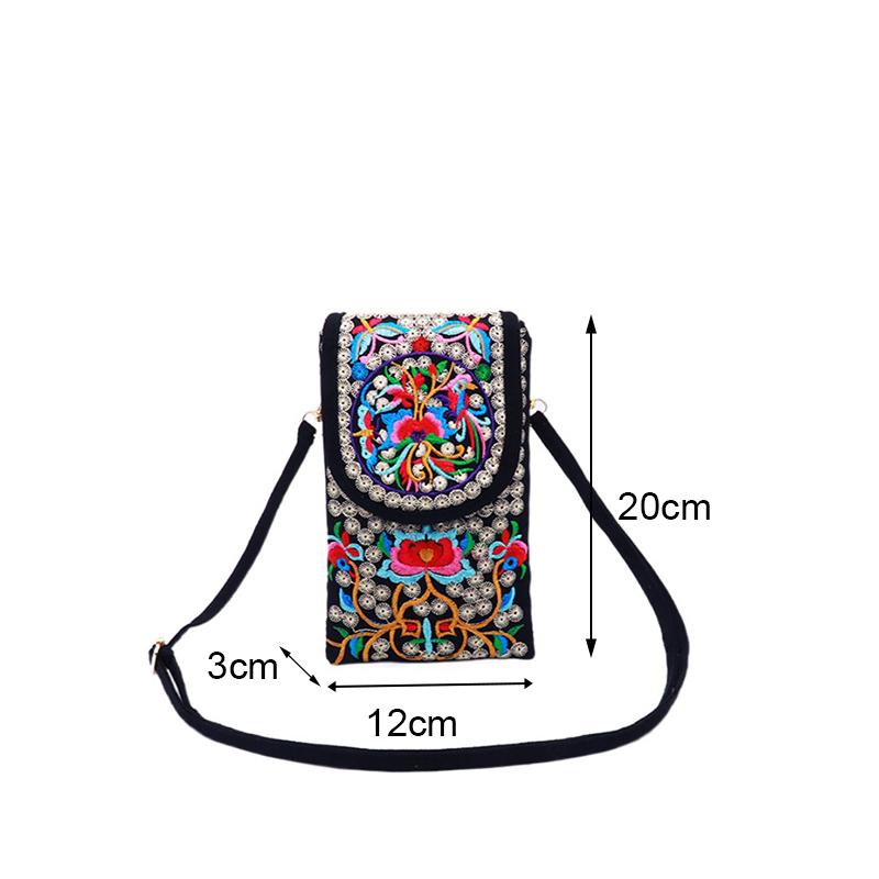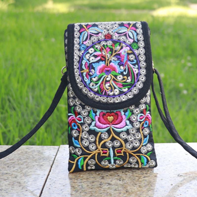 Yogodlns Новая женская сумка с вышивкой в этническом стиле, сумка для мобильного телефона, парусиновая сумка с клапаном, сумка через плечо, двухслойный нулевой кошелек