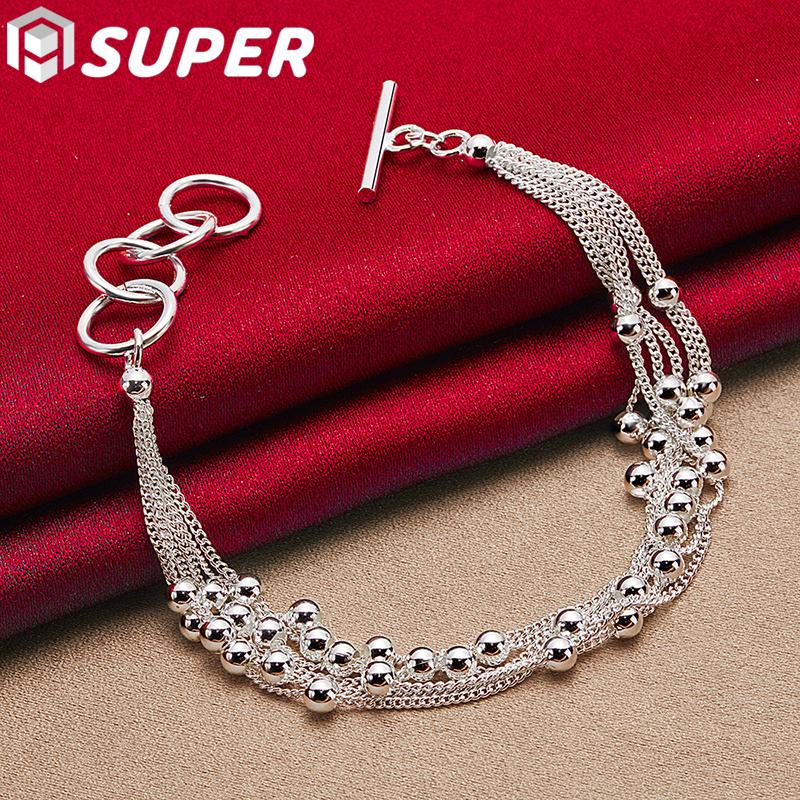 Ювелирные изделия из браслета из стерлингового серебра 925 пробы с гладкими бусинами и несколькими цепочками — купить товар онлайн с бесплатной доставкой по всему миру!