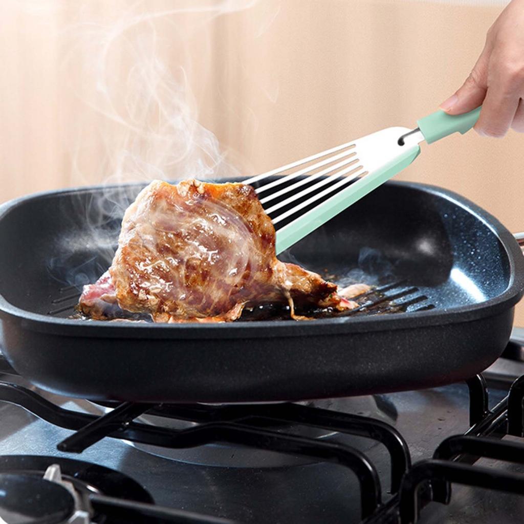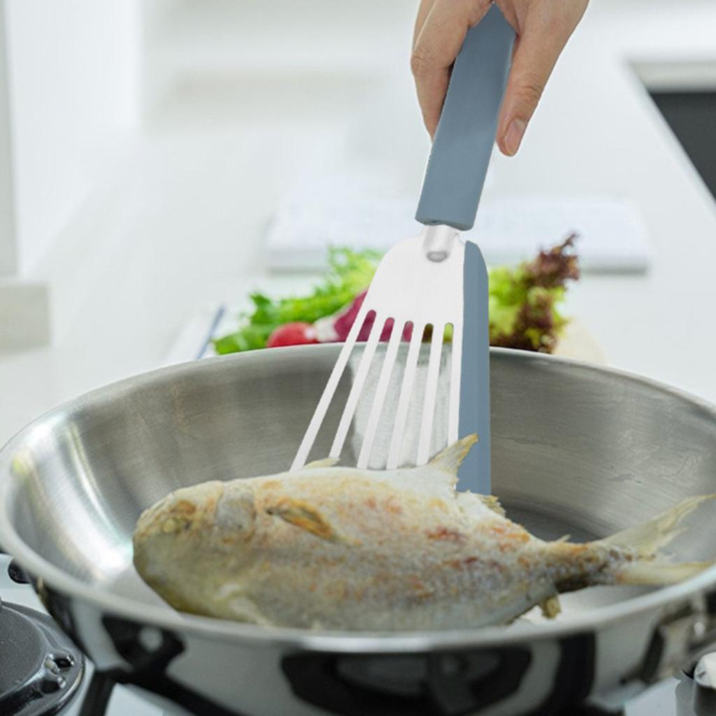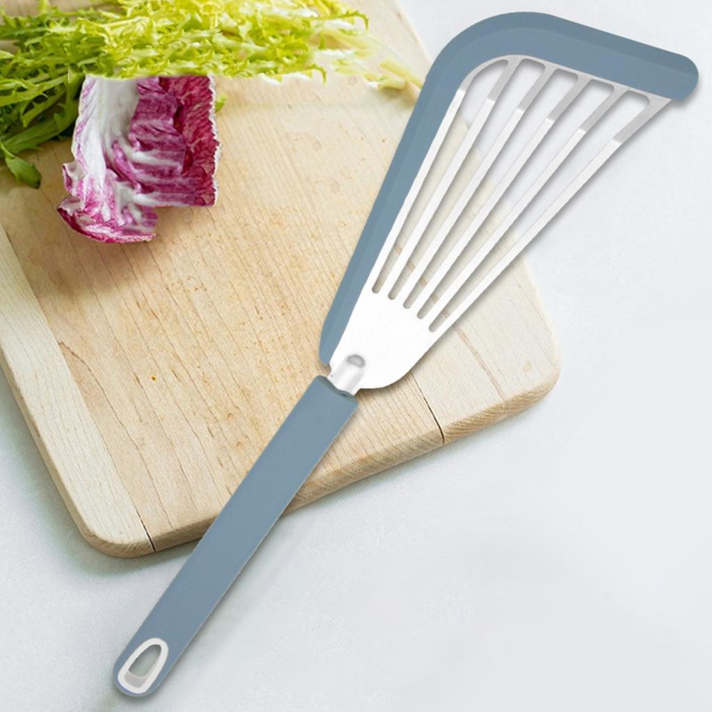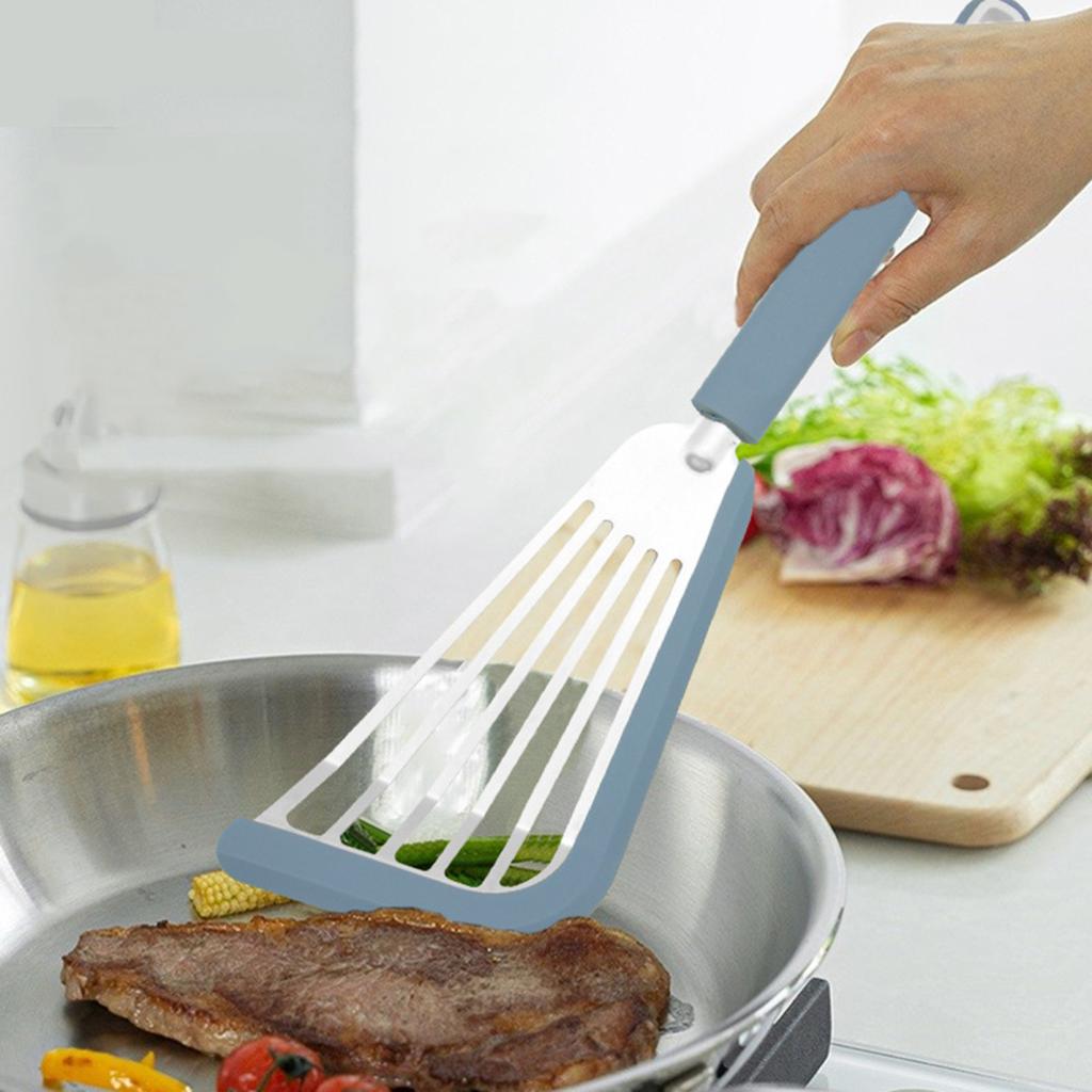 Наша лопатка для жарки из нержавеющей стали, оснащенная эргономичной длинной силиконовой ручкой, очень удобна в использовании и легко удерживается, не соскальзывая легко. Этот продукт является обязательным для любой домашней кухни.