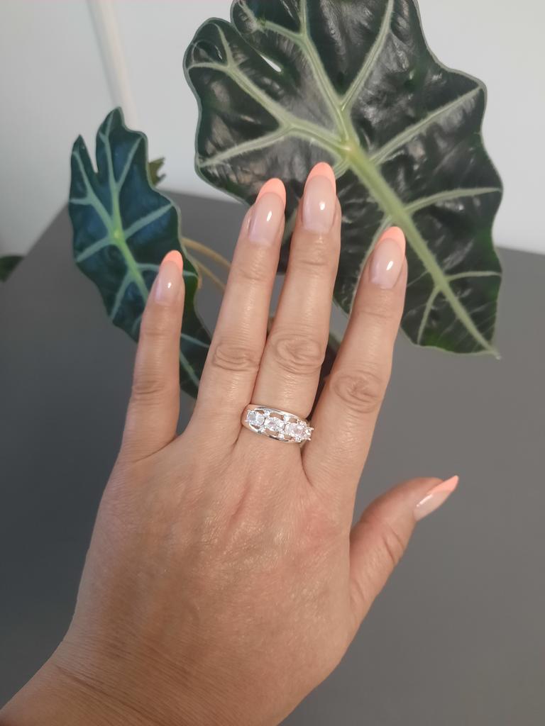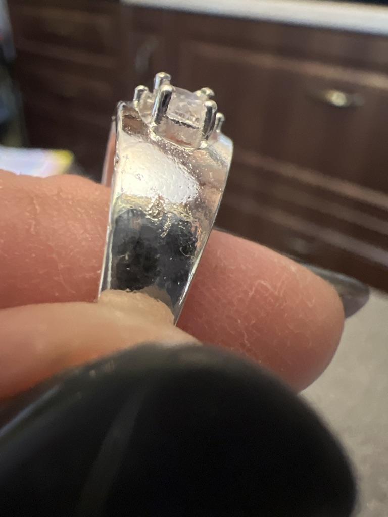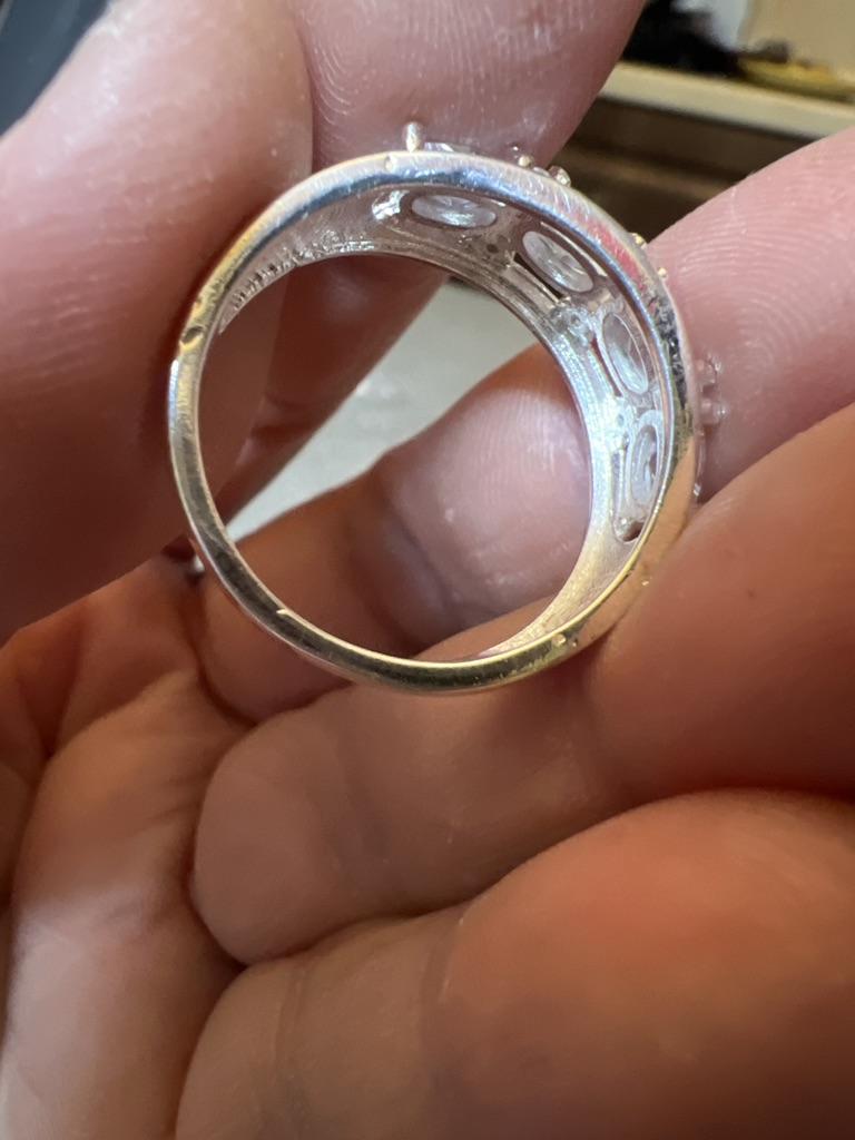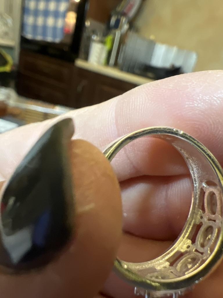 Задумка у кольца хорошая, кольцо красивое, но по всему кольцу какие- то коцки , царапины, неровности . В одном месте проплешина ( первая фото) и есть ощущение, что кольцо не целиком из серебра, а серебряное только напыление . На безымянный палец велико, а на средний одевается, но палец как сосиска в нем перетянутая .