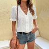 Белый кружевной пуловер с пышными рукавами и v-образным вырезом, женская рубашка 2023, летние тонкие повседневные блузки, женские корейские элегантные открытые топы 25619