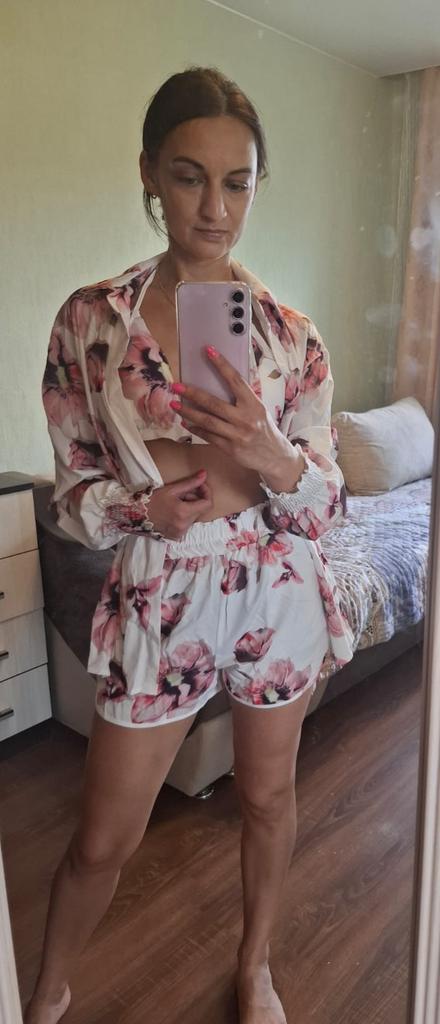 Недовольна пошивом. Блузка большая, а шорты маленькие. Пошив шорт не понятен мне. В них неудобно. Они поднимаются при ходьбе вверх. Блузу нужно уменьшать... рукова ооочень длинные. Хорошо хоть бюст подошёл..в шортах не хватает 4 см...