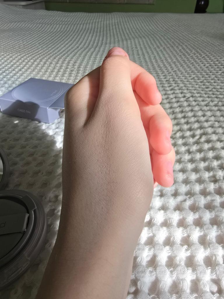 Когда впервый раз открыла, то испугалась, что оттенок сильно розовый. При использовании тон ложиться ровно и нейтральным оттенком. (На моей руке вообще не заметно, что я что-то наносила ) На коже никак не ощущается, пахнет кремом для рук. Для таких белоснежек как я - самое то