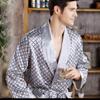 Свободный халат с v-образным вырезом, одежда для сна, весеннее мужское атласное кимоно для отдыха, ночная рубашка, халат, ночная рубашка, мужское платье с принтом, Золотая домашняя одежда — купить товар онлайн с бесплатной доставкой по всему миру!