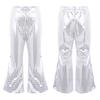Детские расклешенные брюки для мальчиков и девочек, блестящие брюки с эластичной резинкой на талии и расклешенным низом для джазовых диско, брюки для современного танца на сцене