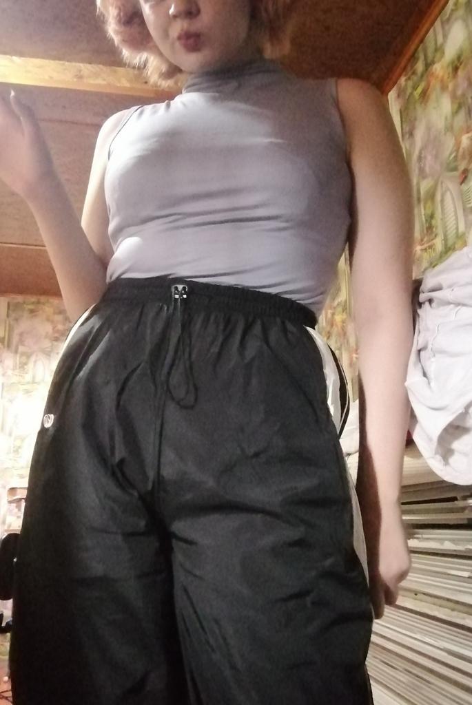 На бедра 104 см взяла хл, сели супер длина ног от пупка до пола 102 см (рост всего 158) штпнинки по полу немного тащатся, но с обувью супер ткань тоненькая и мне кажется не дышащая, такая ветровочная, но мне все нравится, все супер у меня вообще все супер и пусть у вас будет супер и у продавца пусть будет супер