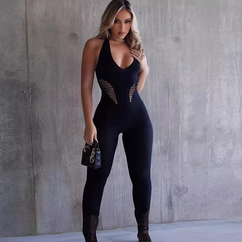 Модный сексуальный глубокий V-образный вырез комбинезон женский висячий вырез ажурный прозрачный без рукавов обтягивающий Y2k боди женская одежда 25833 — купить товар онлайн с бесплатной доставкой по всему миру!