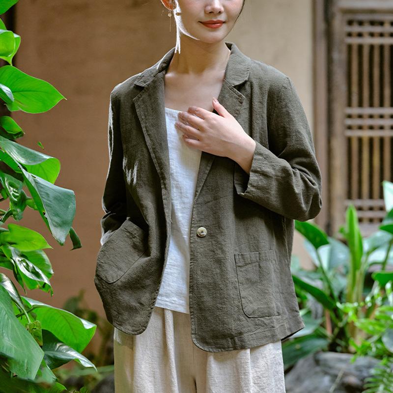Johnature Женское винтажное льняное пальто на заказ, сплошное цветное пальто с отложным воротником и длинным рукавом, весеннее женское пальто на одной пуговице