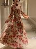Французское винтажное платье миди, женское повседневное вечернее платье с длинным рукавом, элегантное синее весеннее пляжное цельное платье, корейская мода