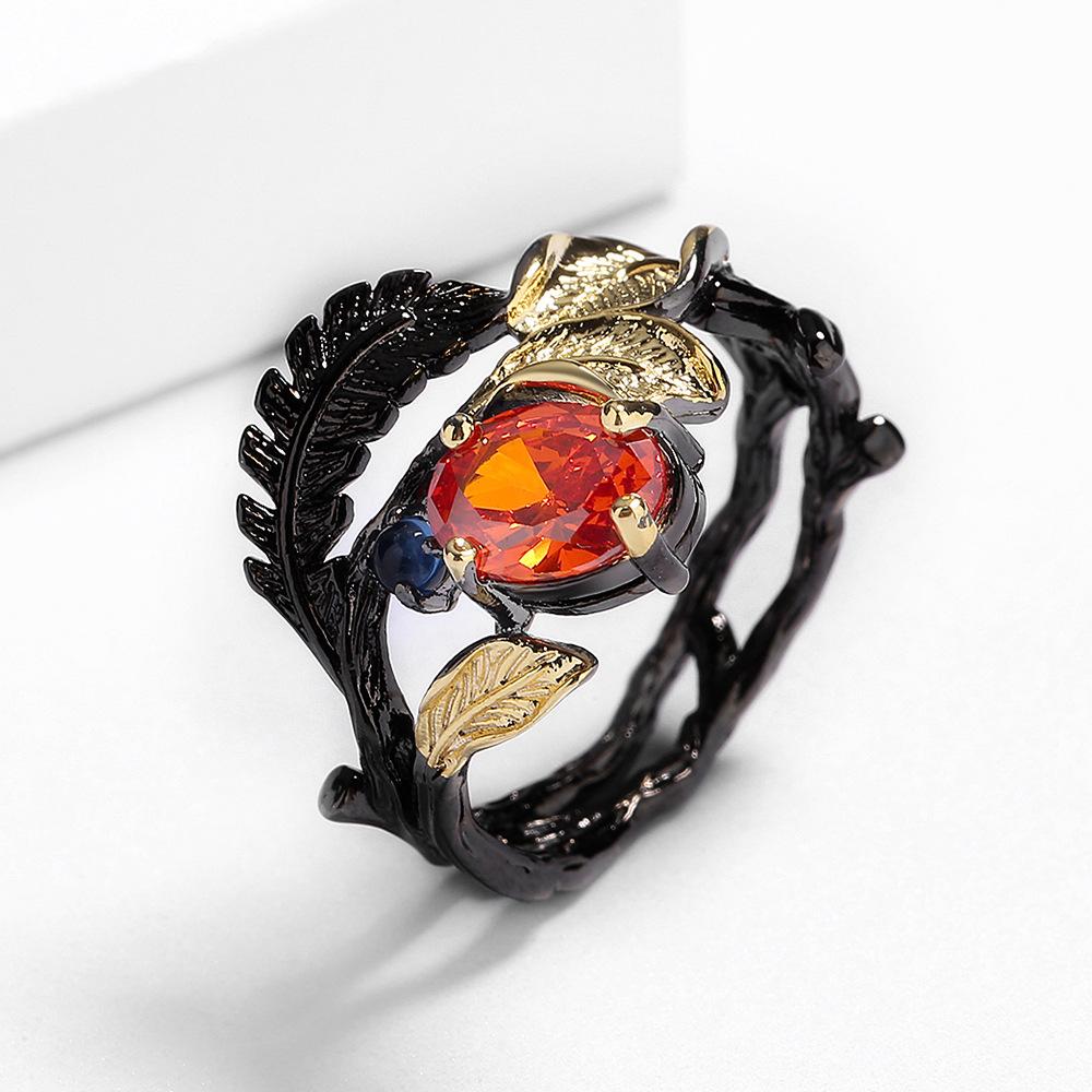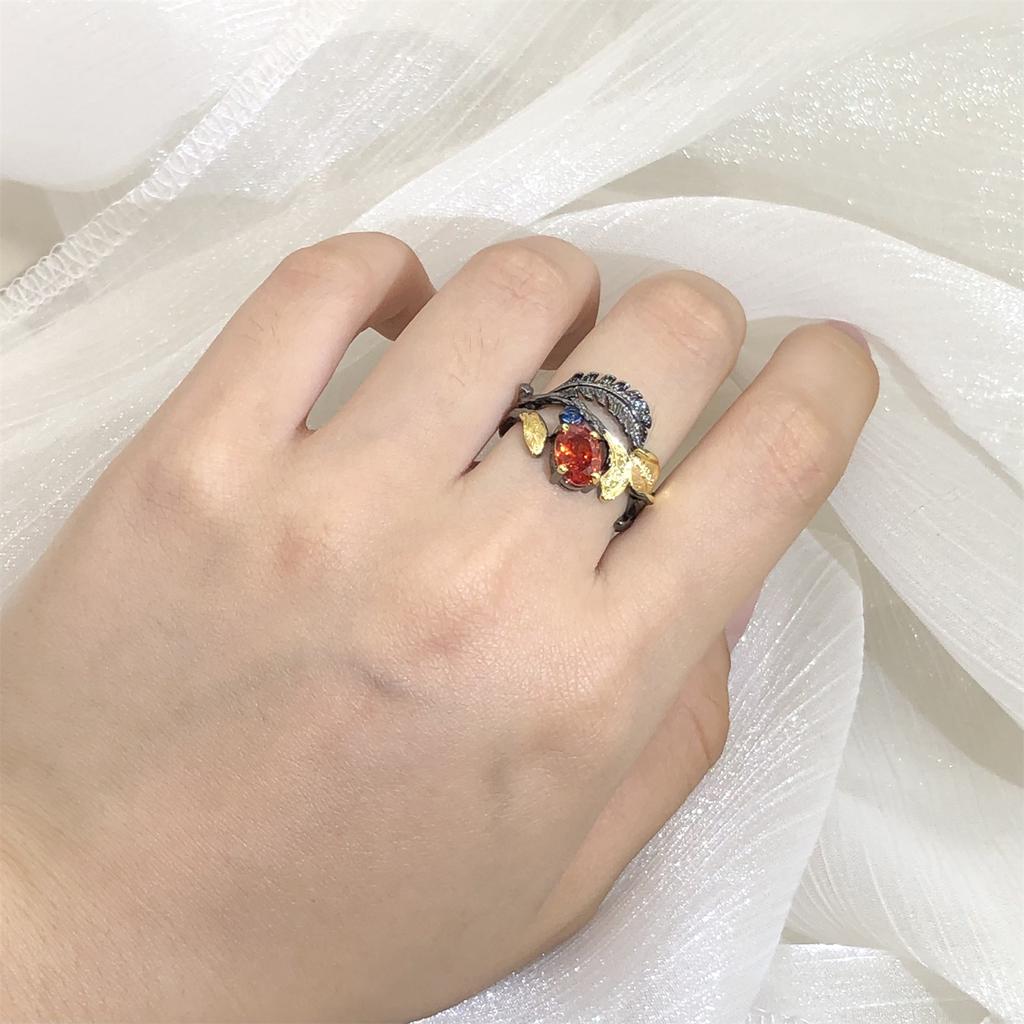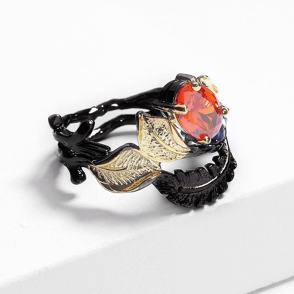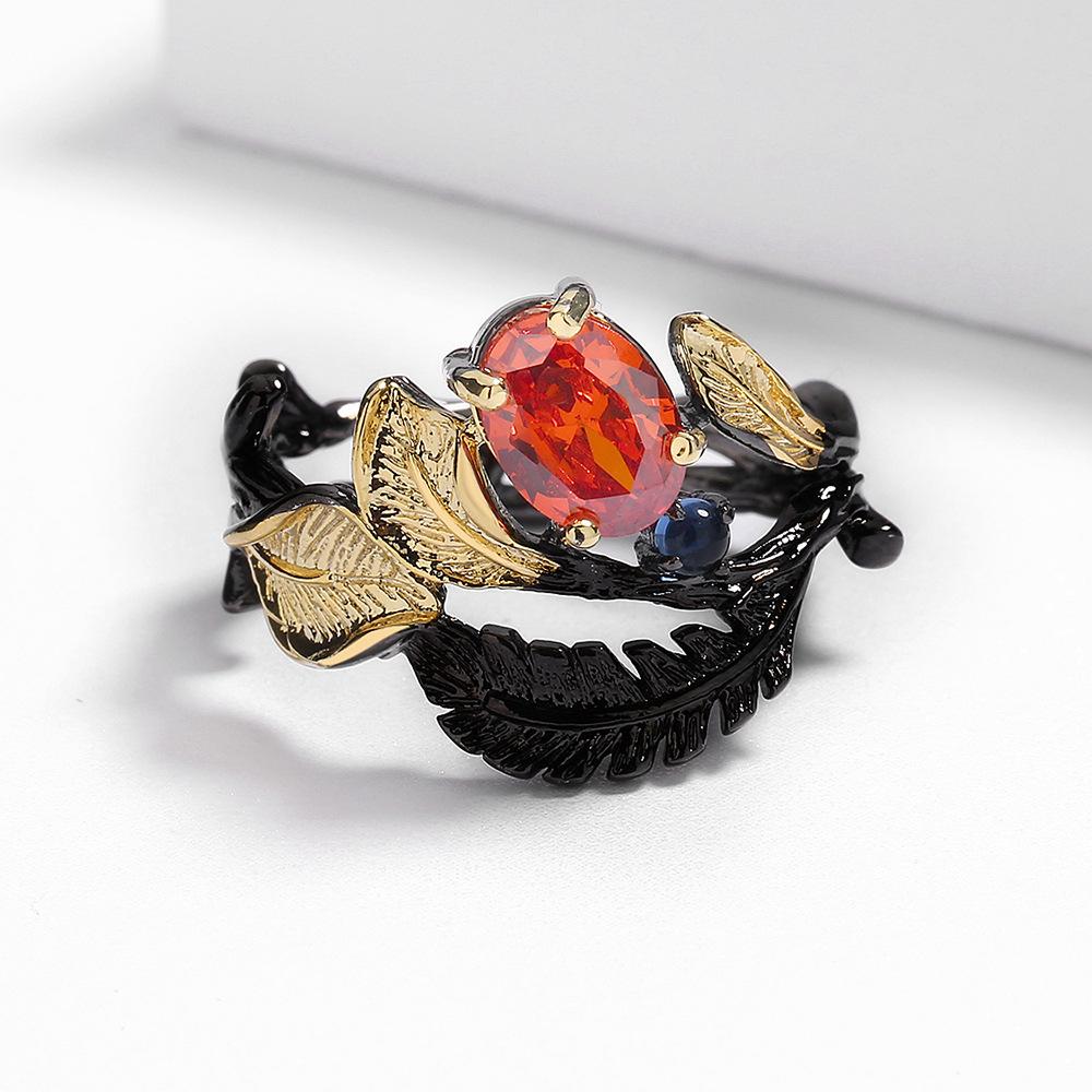 Изысканные ювелирные изделия из черного золота, кольцо с перьями для женщин, высококачественные ювелирные изделия с инкрустацией из красного циркона, ювелирные изделия из черного золота, ювелирные изделия для вечеринок