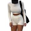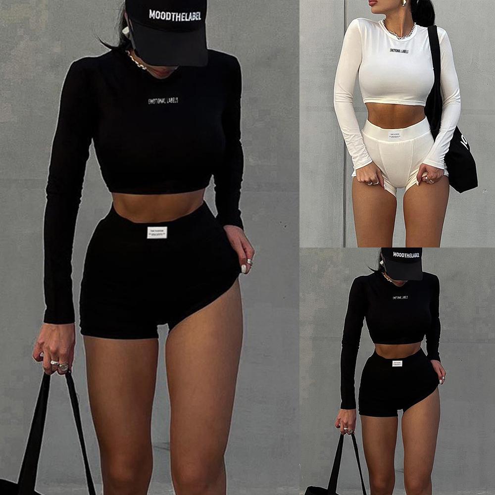 Женский спортивный костюм для йоги и тренажерного зала, укороченные топы с длинными рукавами, шорты, комплект одежды для отдыха, 2 шт.