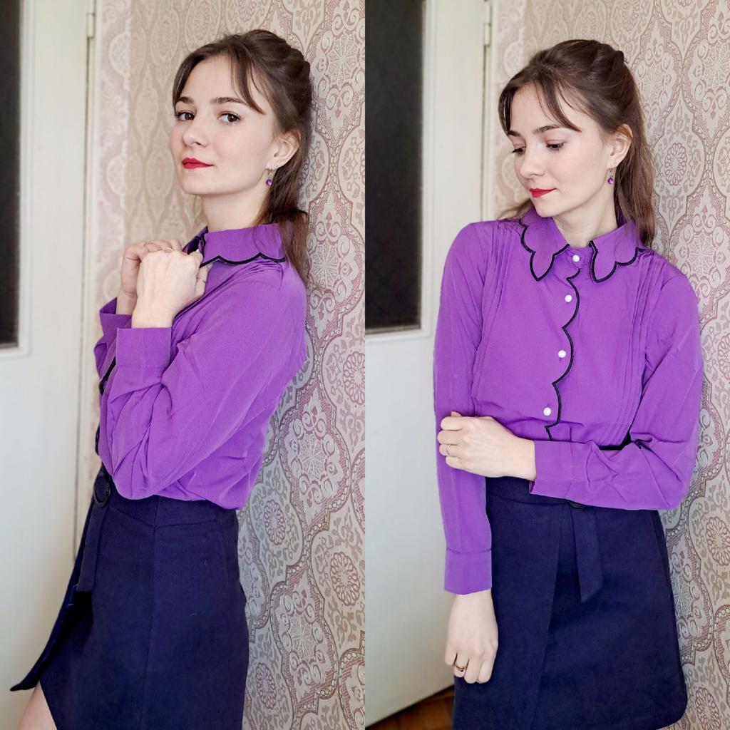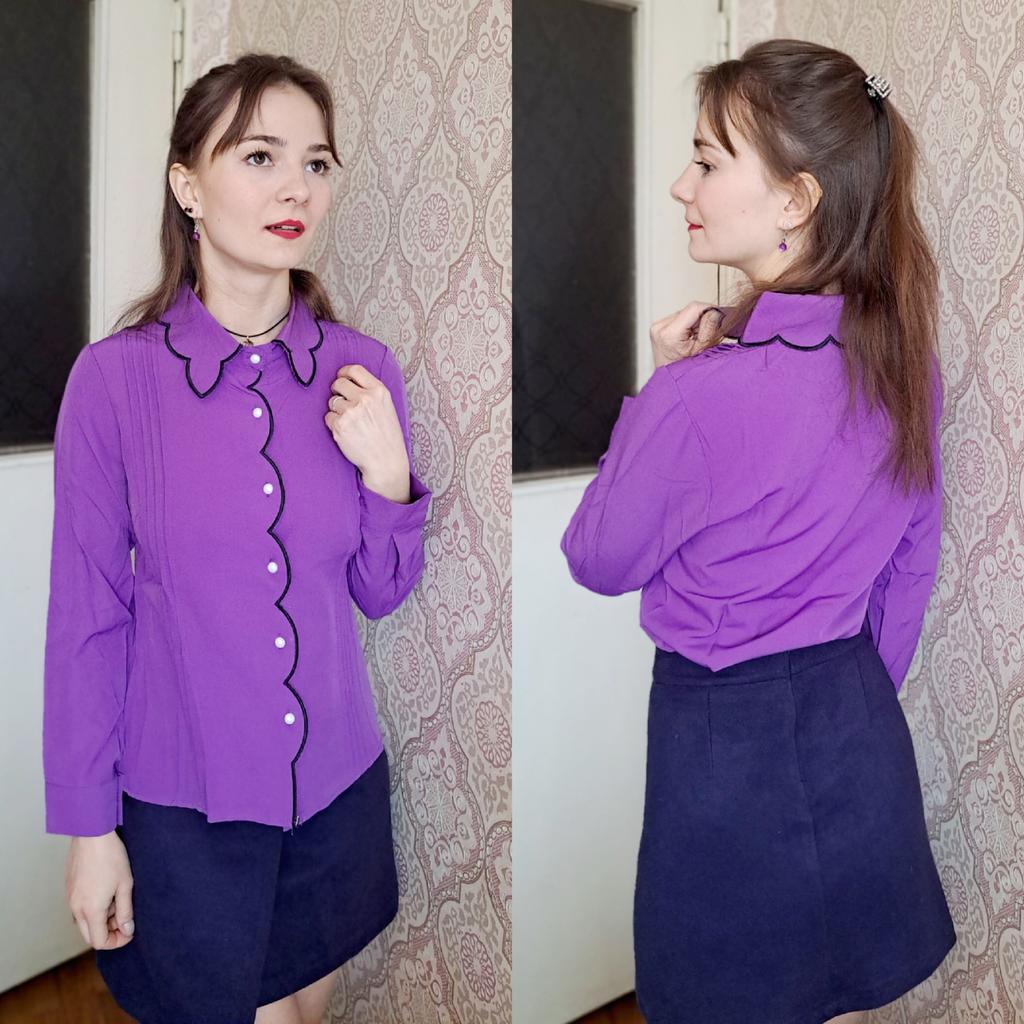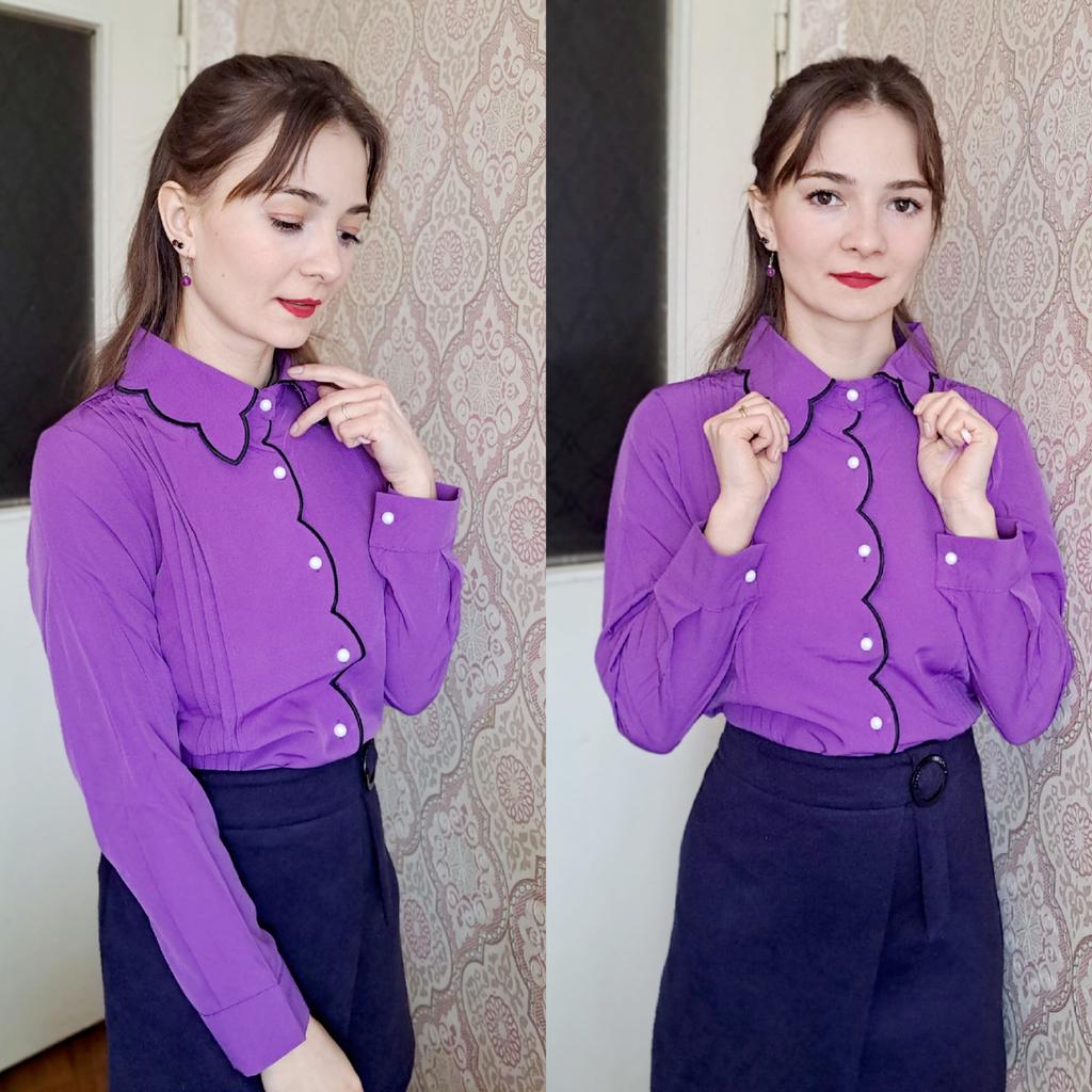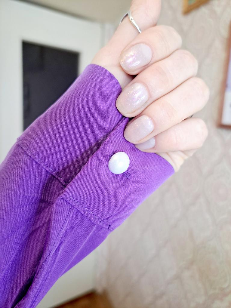 Фиолетовая блузка👚 Какой красивый, насыщенный и глубокий цвет😍 любоф🍆 Товар отличного качества. Блузка из тонкого полиэстра. Приятный на ощупь и в носке,не просвещается🫐 На мне размер S. Пришёлся мне как раз. В груди в упор(мой ОГ 80 см). Немного оттопыривается около пуговиц в области груди из-за интересного дизайна,но булавка исправит дело🍇 Цвет прямо как на промофото,очень красивый💜 Товар и продавца рекомендую. Посылка пришла до Тулы за месяц. Отслеживалась до конца. Упакована в свой пакет и почтовый. Если хотите читать такие же интересные отзывы о взрослых и детских товарах , подписывайтесь на меня, я буду рада 😉
