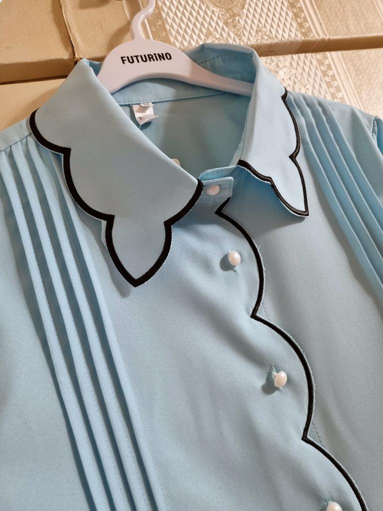Красивая офисная блузка Есть такие вещи, которые сразу влюбляют в себя, так и вышло с этой блузкой. Она выполнена в благородном винтажном стиле, впишется как в офисный стиль, так и на особый случай. Носить можно как заправленной, так и на выпуск. Очень понравилась отделка воротничка и полочки контрастной обтачкой. Пуговки, как половинка жемчужины. Простроченые складочки спереди сверху вниз напомнили мне моё школьное платье с такими же складками, только цвет другой. Кстати у продавца их восемь. Заказала размер М на параметры 85×64×91, рост 150 см. Село идеально. Замеры вещи: грудь 90 см, бедра 96 см, ширина плеч 37 см, длина рукава 55,5 см, длина по спинке 57 см. Ткань - шелковистый полиэстер, приятный, не мнётся и легко гладится. Искренне рекомендую. Личный промокод на скидку 5% на любые товары joom: LIV311XQDS. Переходите в мой телеграм-канал followmekanal за актуальными промокодами.