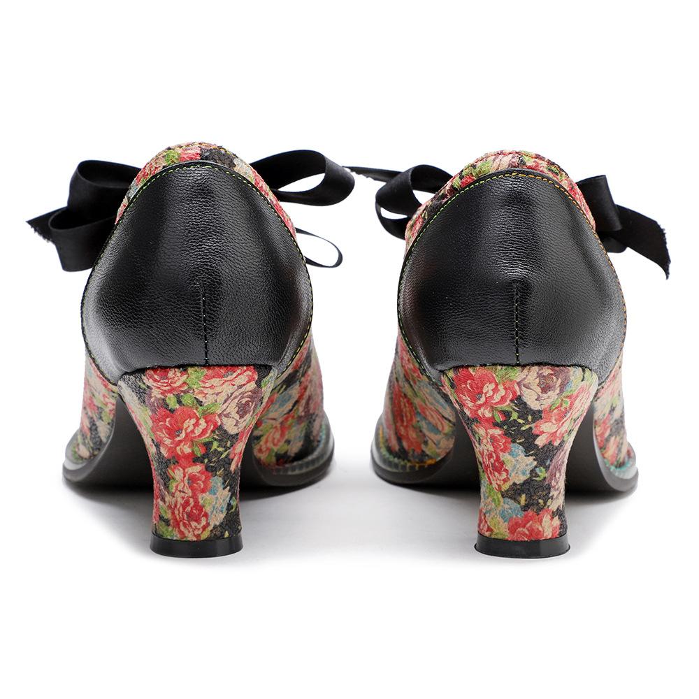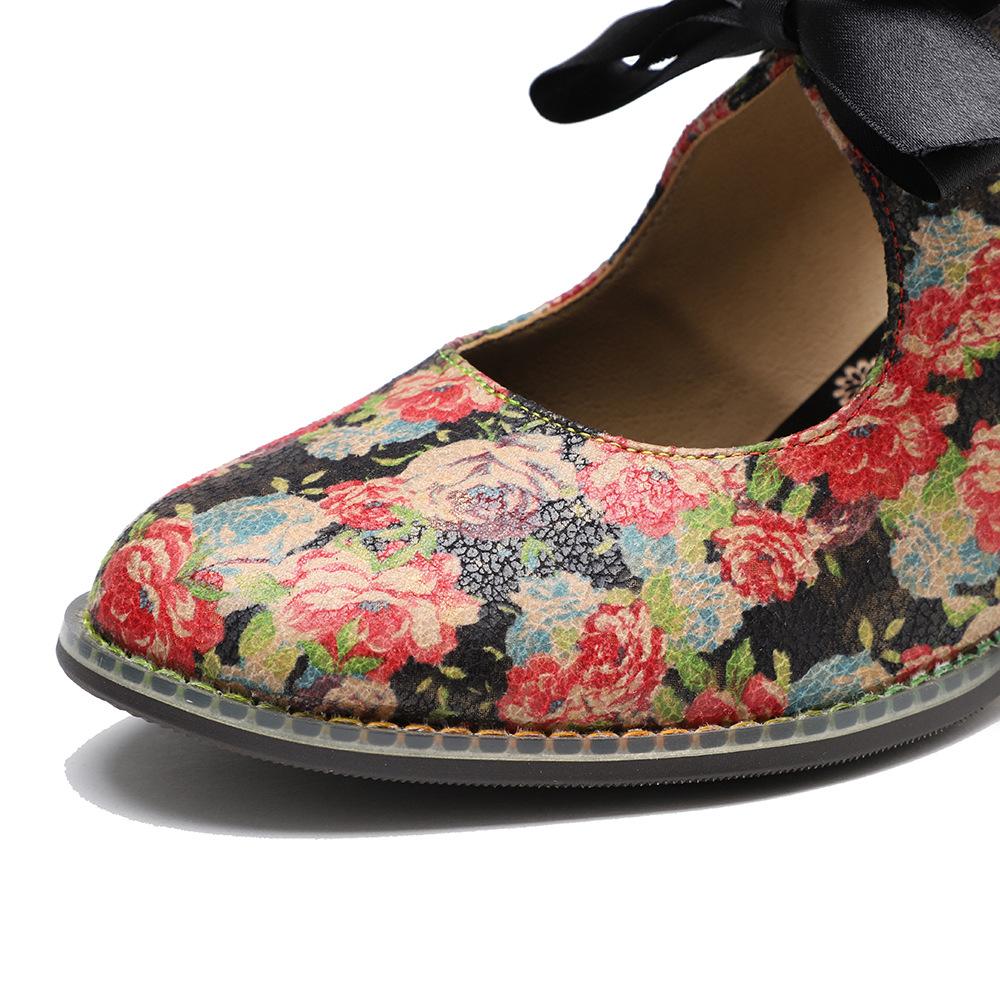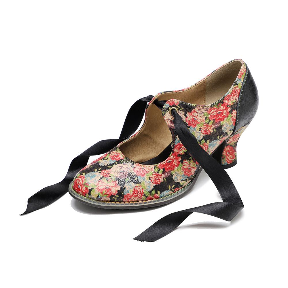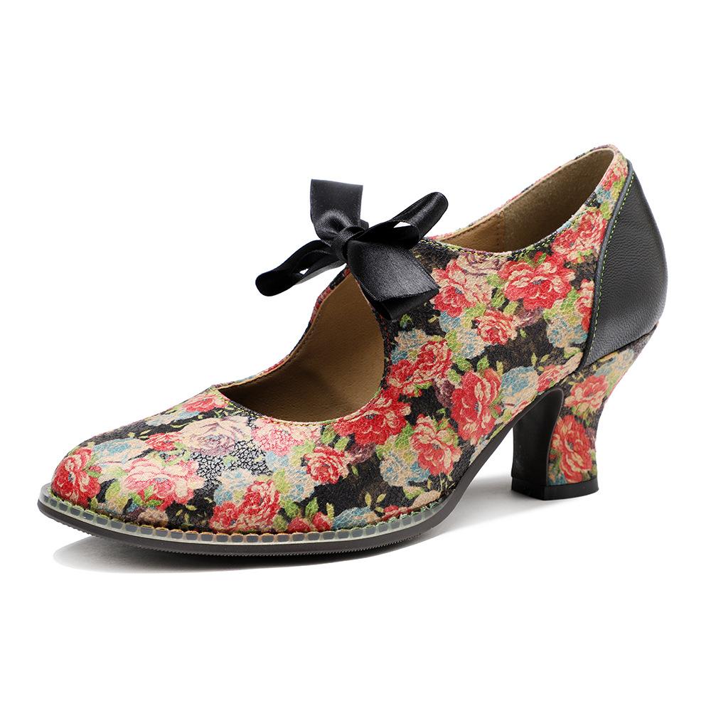 Johnature Женская обувь, туфли-лодочки с милым принтом, винтажные женские туфли на среднем каблуке с кружевом и бантом в сельской местности