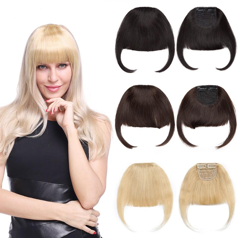 Челка из 100% человеческих волос, 2 заколки на заколке с бахромой для наращивания волос