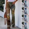 Повседневные узкие брюки-клеш с цветочным принтом, женские сексуальные длинные брюки со средней талией, женские весенние винтажные мягкие женские брюки 25863