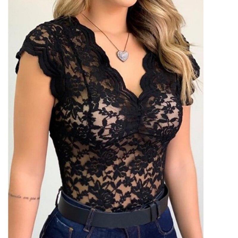 Blusas модные сексуальные блузки с V-образным вырезом женские летние 2023 тонкие кружевные рубашки топы для девочек однотонные топы одежда элегантные 25950 — купить товар онлайн с бесплатной доставкой по всему миру!