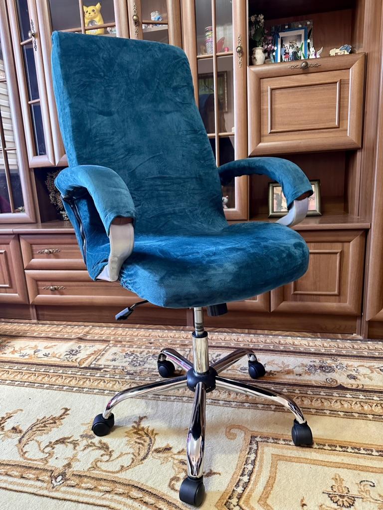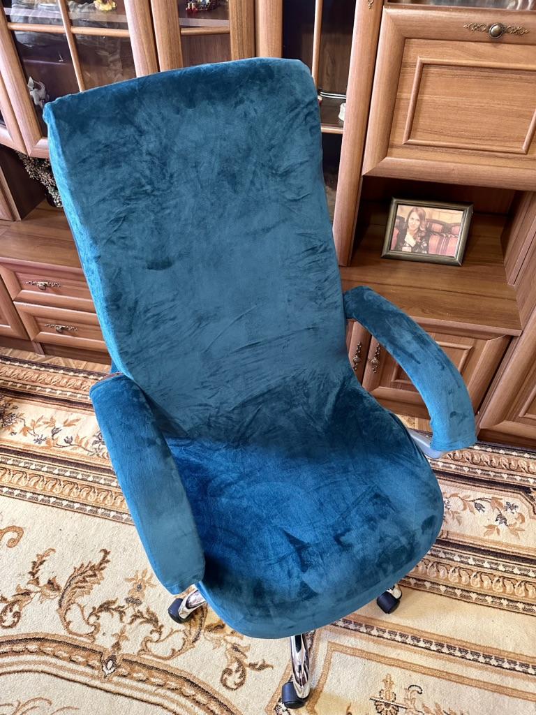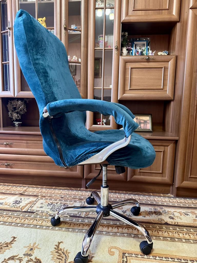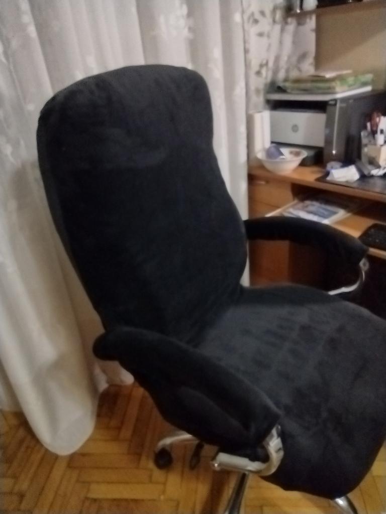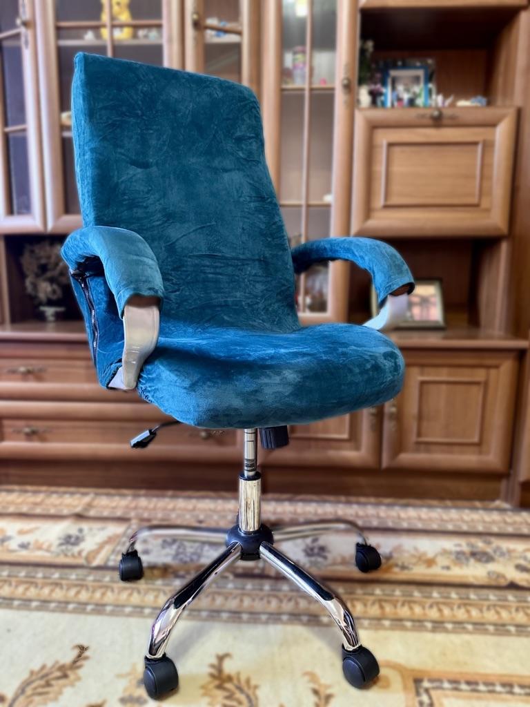 Получила комплект- чехол для компьютерного кресла и нарукавники для этого кресла. Любовь с первого взгляда 😁 У меня кресло очень объемное. Ткань стрейч, бархатистая. Чехол оделся на моего богатыря сразу и без заморочек, нарукавники достаточно обьемные и длинные, тоже подошли на моего криворучку очень хорошо. Короче, мы с моим дружком-креслом довольные как слоны 😁 Цвет красивый шоколадный, фото не передало цвет в реальности. Обязательно закажу еще один комплект на смену. На фото смотрите на кресло, а не на пол, у нас собаки 😁
