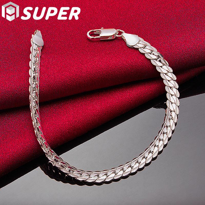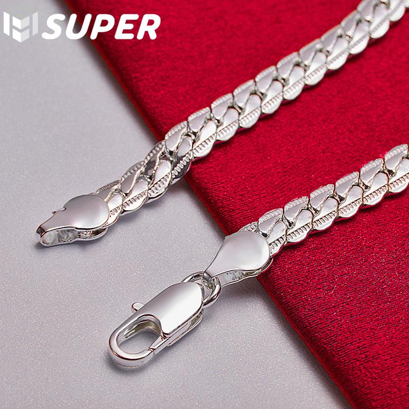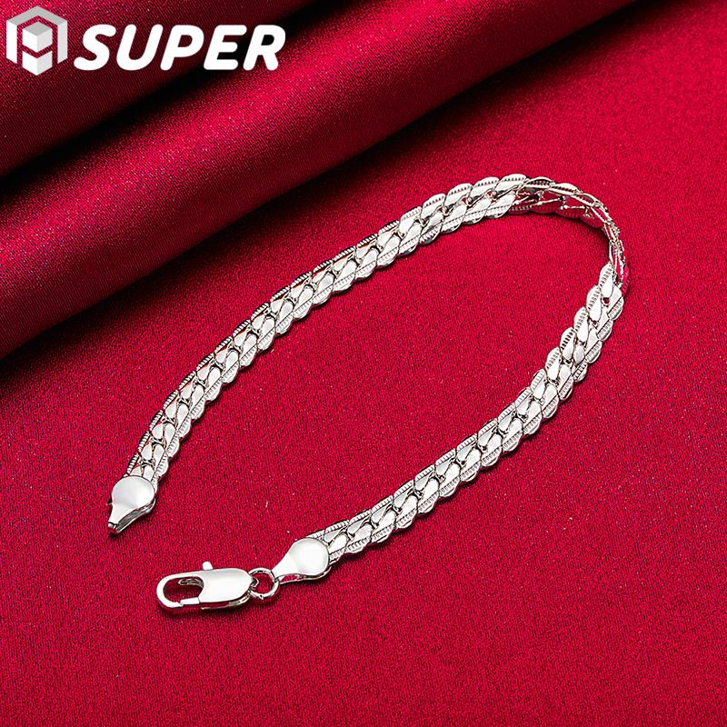 Браслет из стерлингового серебра 925 пробы, 6 мм, 18/19/20 см, плоская боковая цепочка, ювелирные изделия с застежкой-лобстером