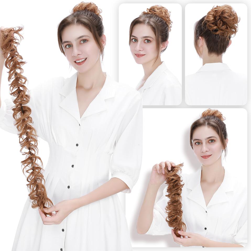 100% настоящие человеческие волосы, вьющиеся пончики, шиньон, кольцо, эластичная лента, булочка, шиньон