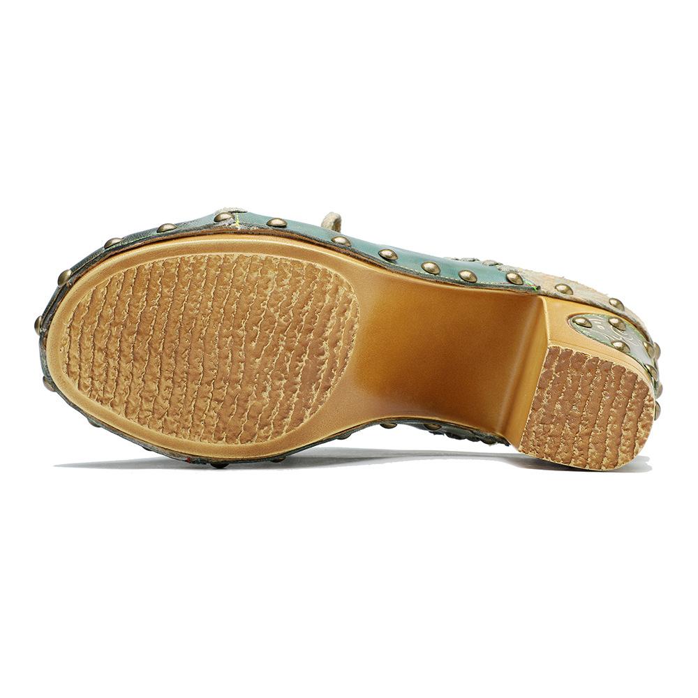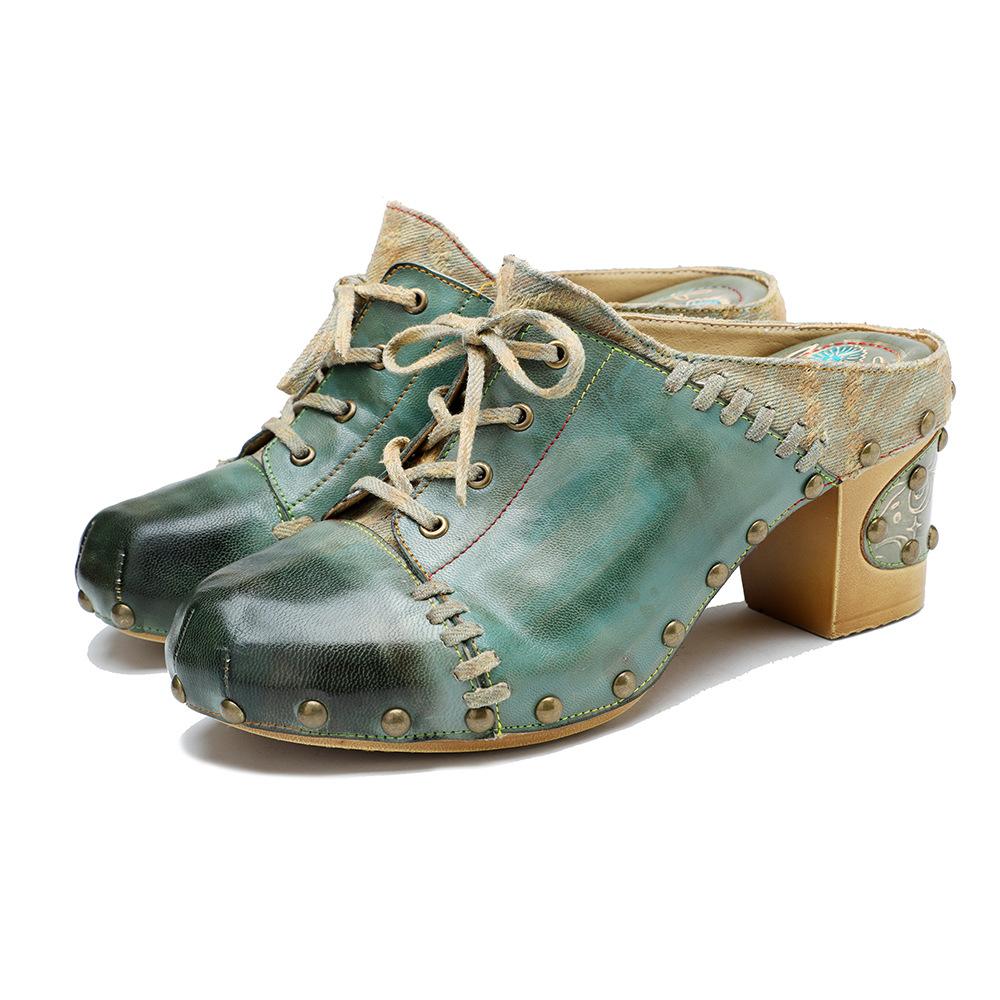 Johnature Тапочки из натуральной кожи в стиле ретро, шлепанцы на высоком каблуке с заклепками, женская обувь
