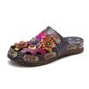 Johnature Тапочки Женская обувь Натуральная кожа Раскрашенные вручную наружные шлепанцы Сандалии ручной работы на плоской подошве с цветами
